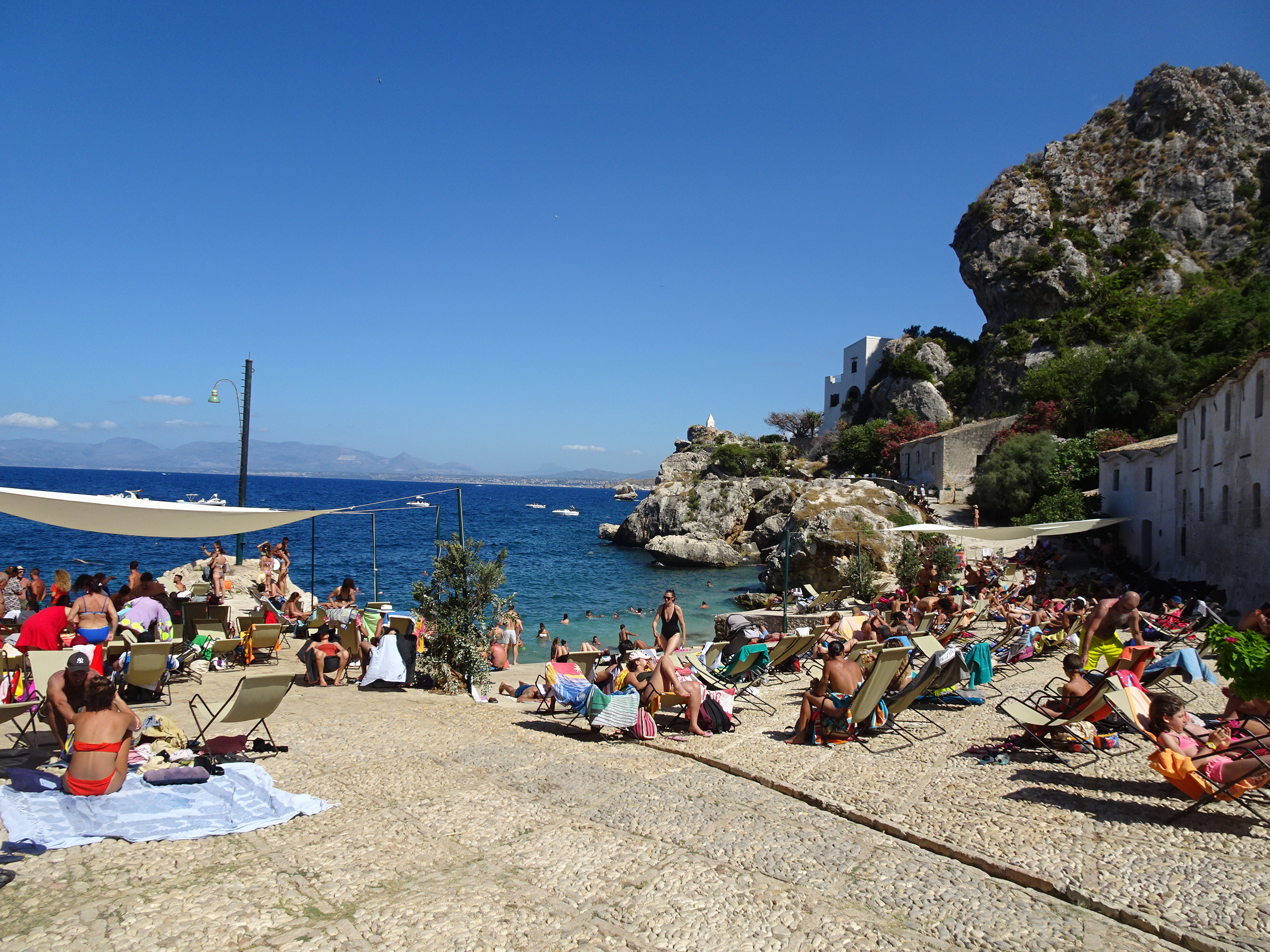 Mica plajă din Scopello, plină de lume