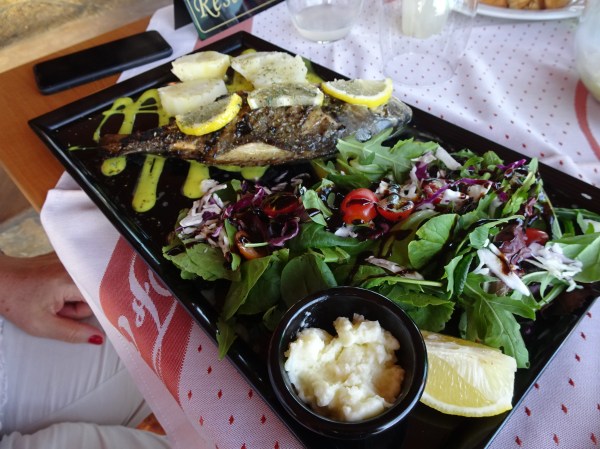 Șezlongurile la Sidari sunt în general gratuite. Fiecare tine de un bar și se așteaptă în schimb să faci consumație. Numai bine, că prânzul l-am servit chiar de pe șezlong.