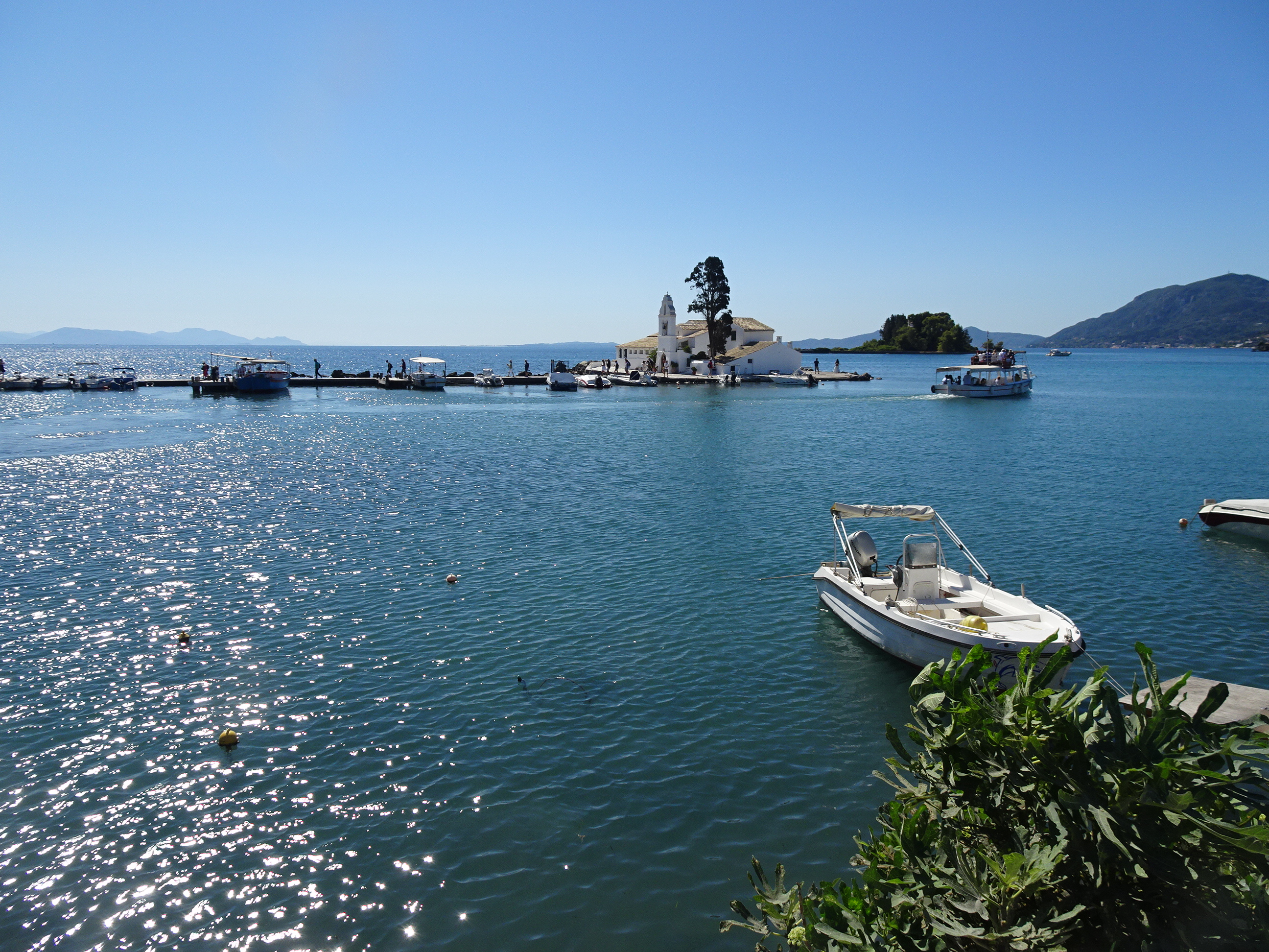 Am mers apoi într-un alt loc de o frumusețe rară. Panagia Vlacherna este o mănăstire splendidă așezată pe o mică insulă nu departe de aeroportul Corfu.
