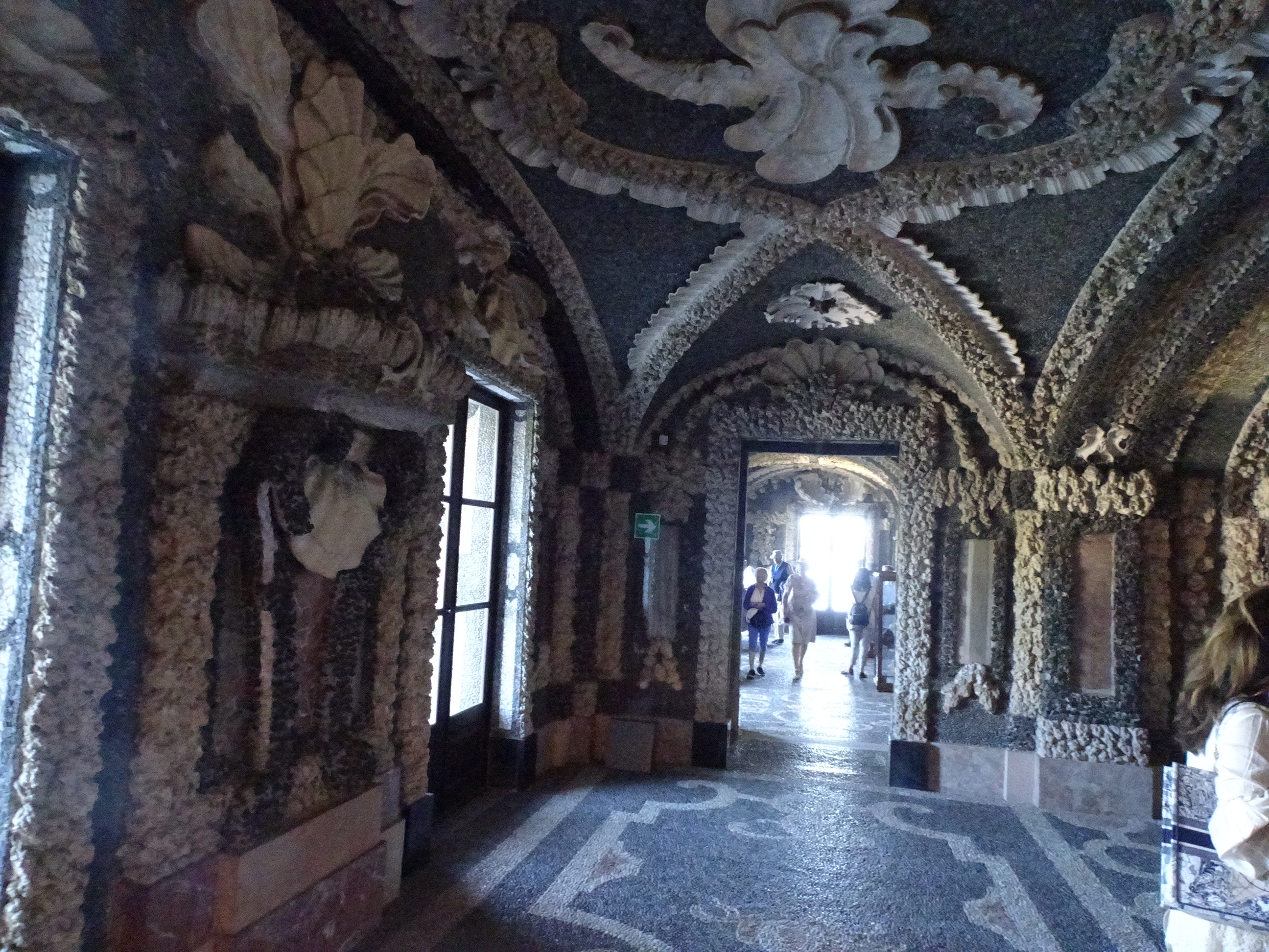 Subsolul palatului are un aspect unic, pereții fiind decorați cu scoici și corali