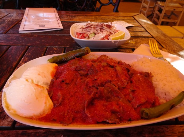 La masa de prânz am servit un Iskender kebab la o terasă din centru