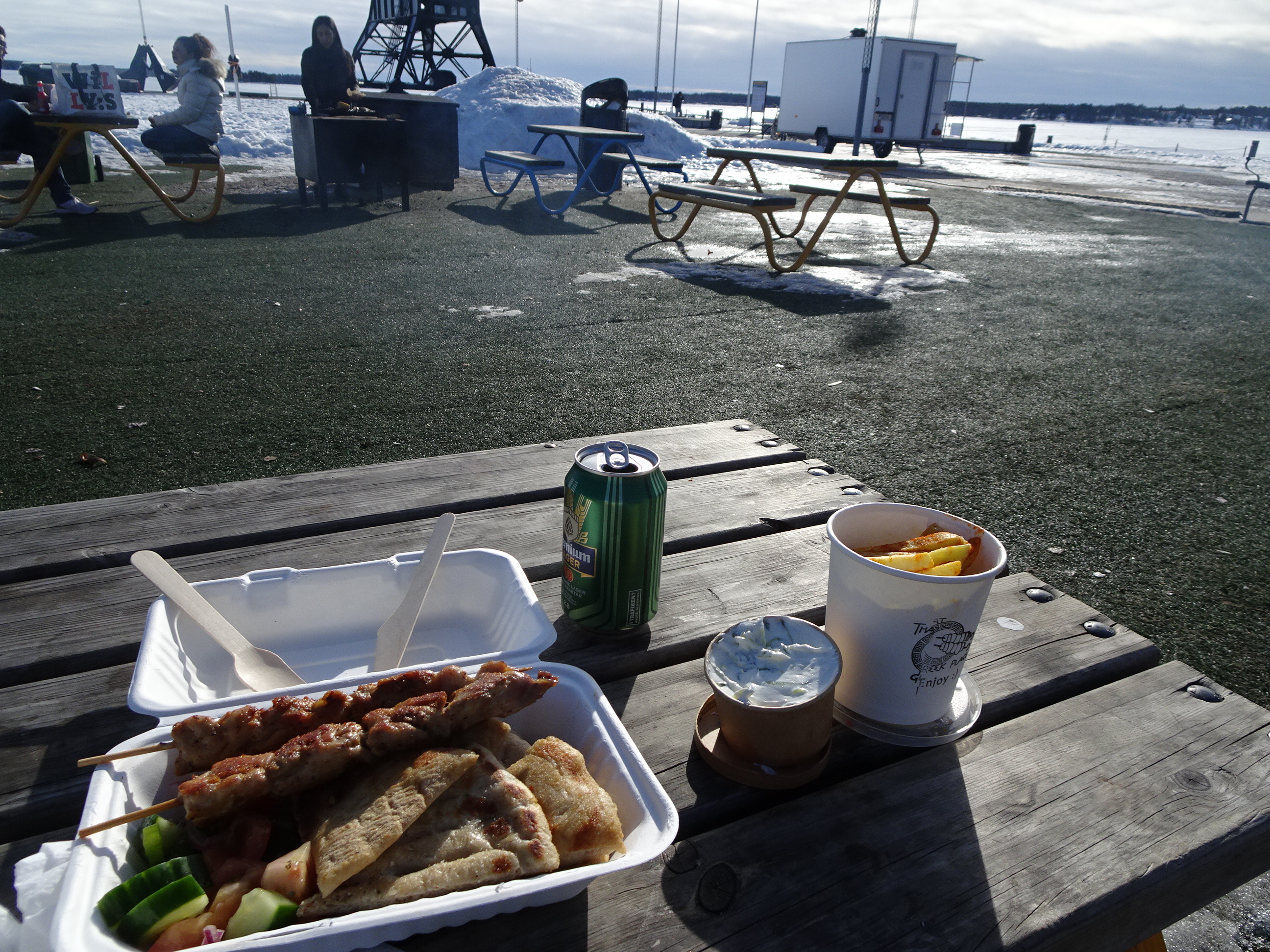 Am servit masa în zona de picnic din port. Am preferat mâncare de la un food truck ca să mă bucur din plin de razele soarelui.