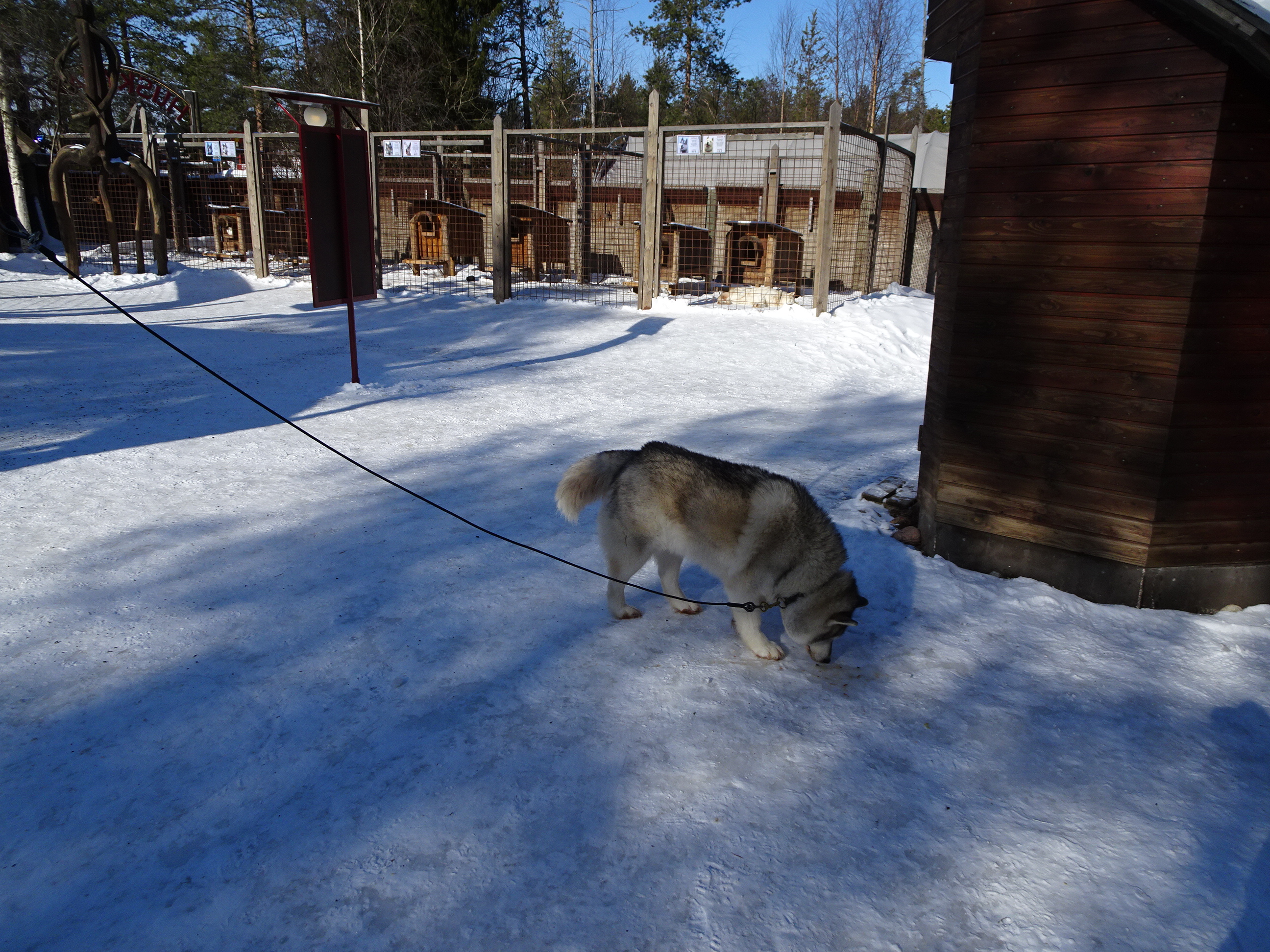 De sărbători nu făcusem o plimbare cu sania trasă de câini de la Santa Village, pentru că trebuia să așteptăm ore bune. De data asta am intrat și o plecare era disponibilă imediat.