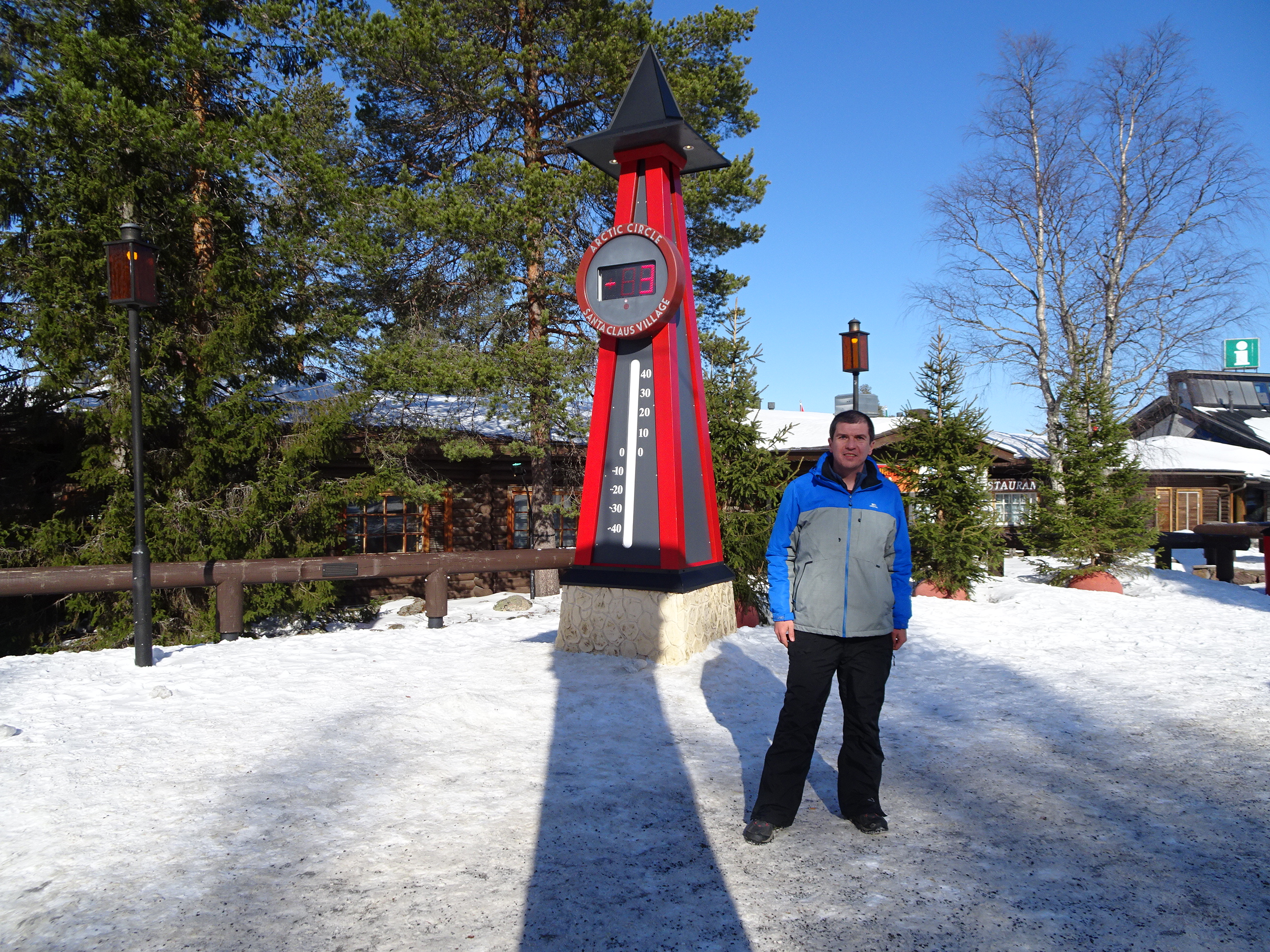 Am sosit la gara din Rovaniemi după un drum lung cu trenul din Lulea, Suedia. Cum am coborât din tren am tras o căzătură zdravănă pe gheața din gară. Un localnic prietenos m-a ajutat să mă ridic și mi-a spus amuzat „Bun venit la Cercul Polar”