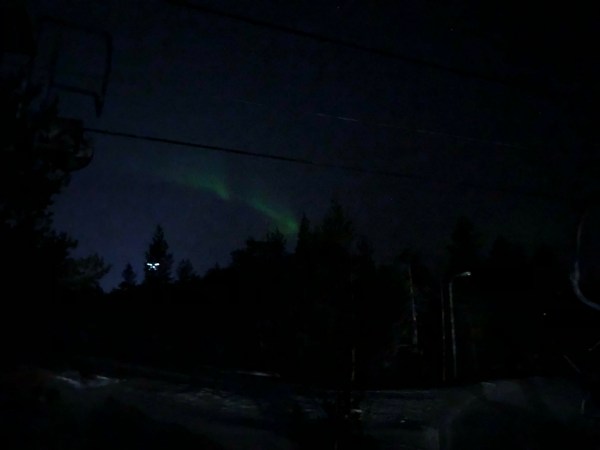 Din vârful Ounasvaara se putea deja zări lumini verzi sclipind peste orașul luminat. Nu se vedeau totuși foarte bine.
