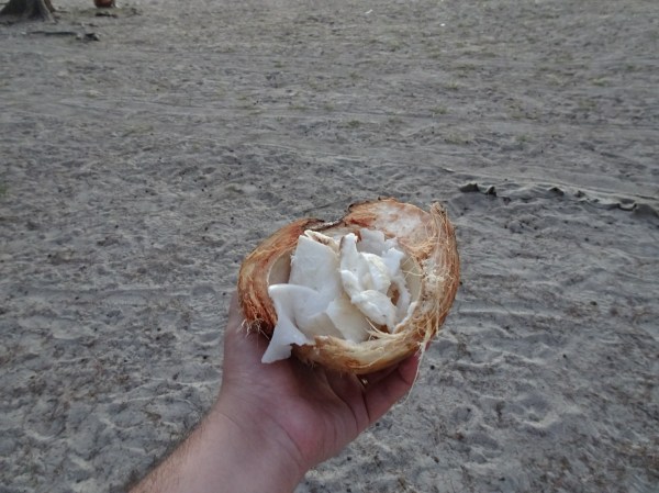 De fiecare dată la plajă am luat o nucă de cocos. Nucile sunt 2 în 1 – mai întâi se bea sucul apoi se sparge pentru a mânca interiorul