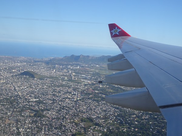 Am zburat peste noapte cu Edelweiss, compania care operează zborurile de vacanță ale Swiss. Cele 9 ore au trecut repede, iar imediat ce s-a luminat am început coborârea peste Mauritius.