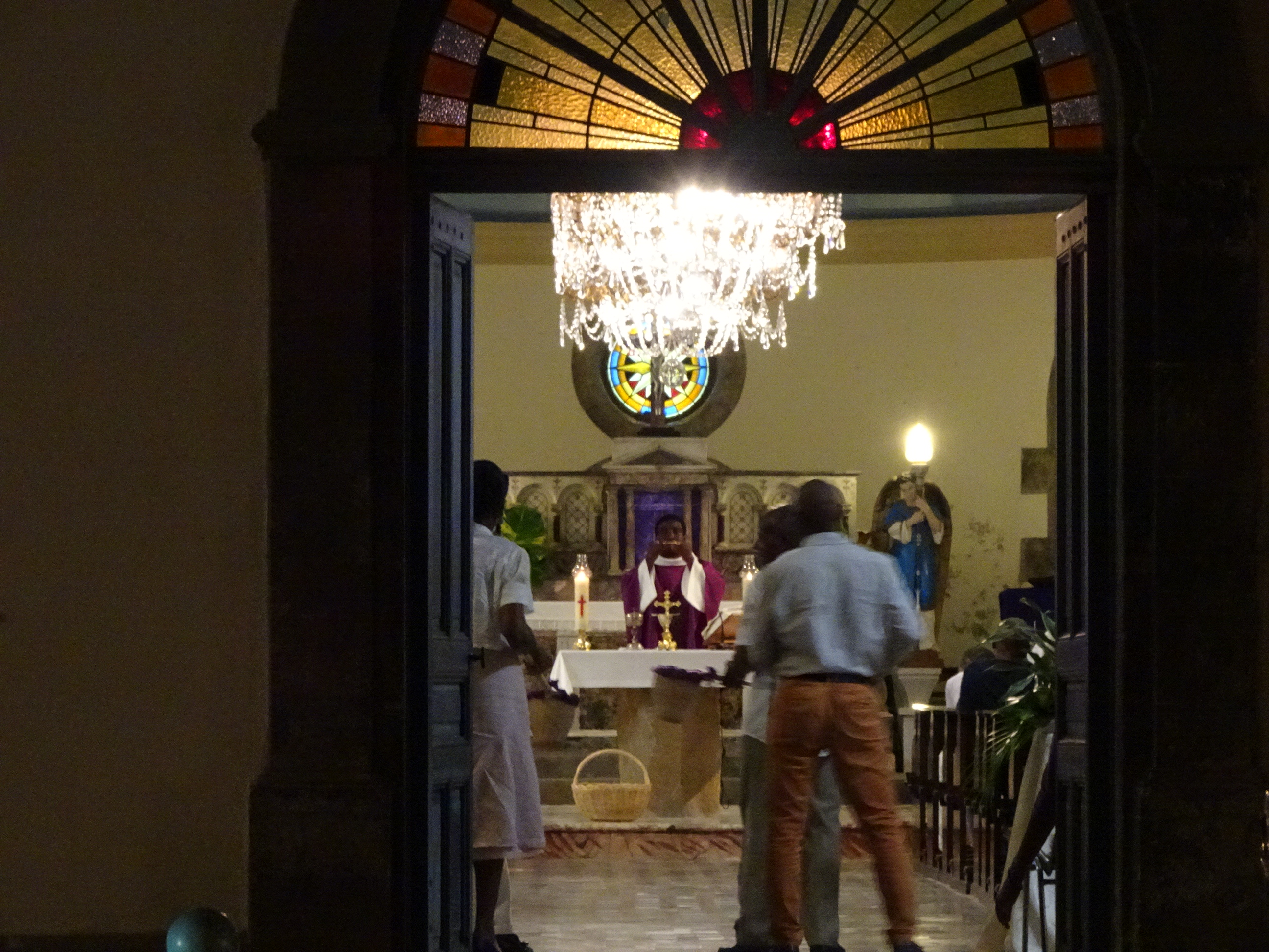 Slujba de seară la biserică. Localnicii sunt în majoritate catolici și participă la toate slujbele importante.