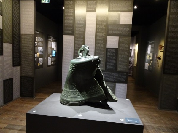 Clopotul vechii biserici topit de lavă. Pe pereți numele celor uciși