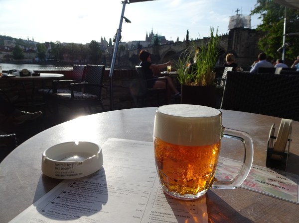 Am ales să închei ziua relaxat cu o masă la un restaurant cu vedere pe malul Vltavei