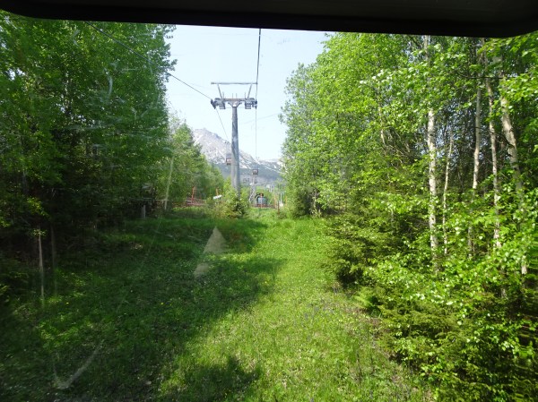 Coborând de pe crestele munților. Vântul de-abia adia în acea zi și telecabina se balansa puțin. Nici nu vreau să îmi imaginez cum se simte când vântul bate cu putere.