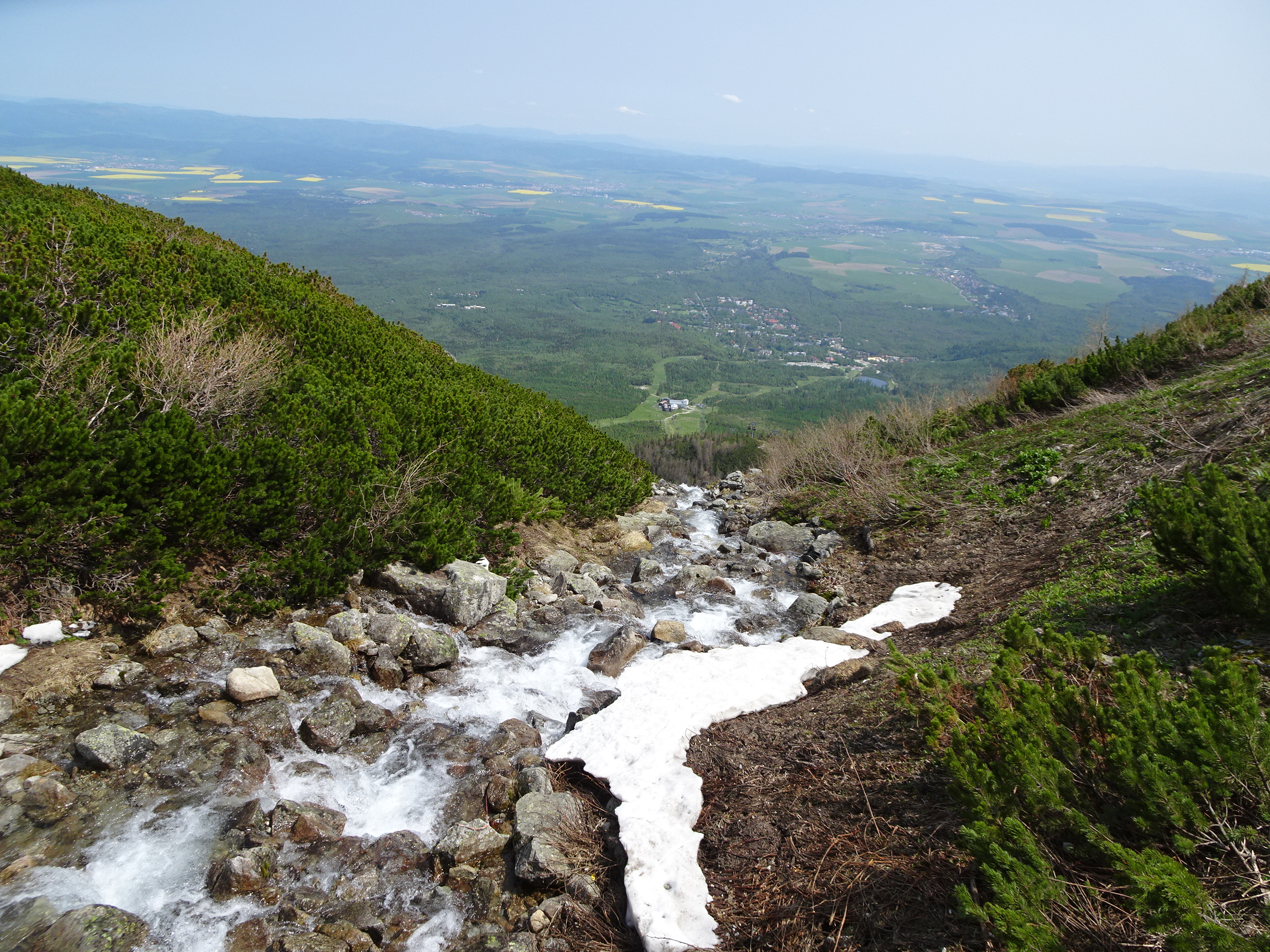 Vederea spre vale de deasupra cascadei. Jos este stațiunea Vysoke Tatry și orașul Poprad.