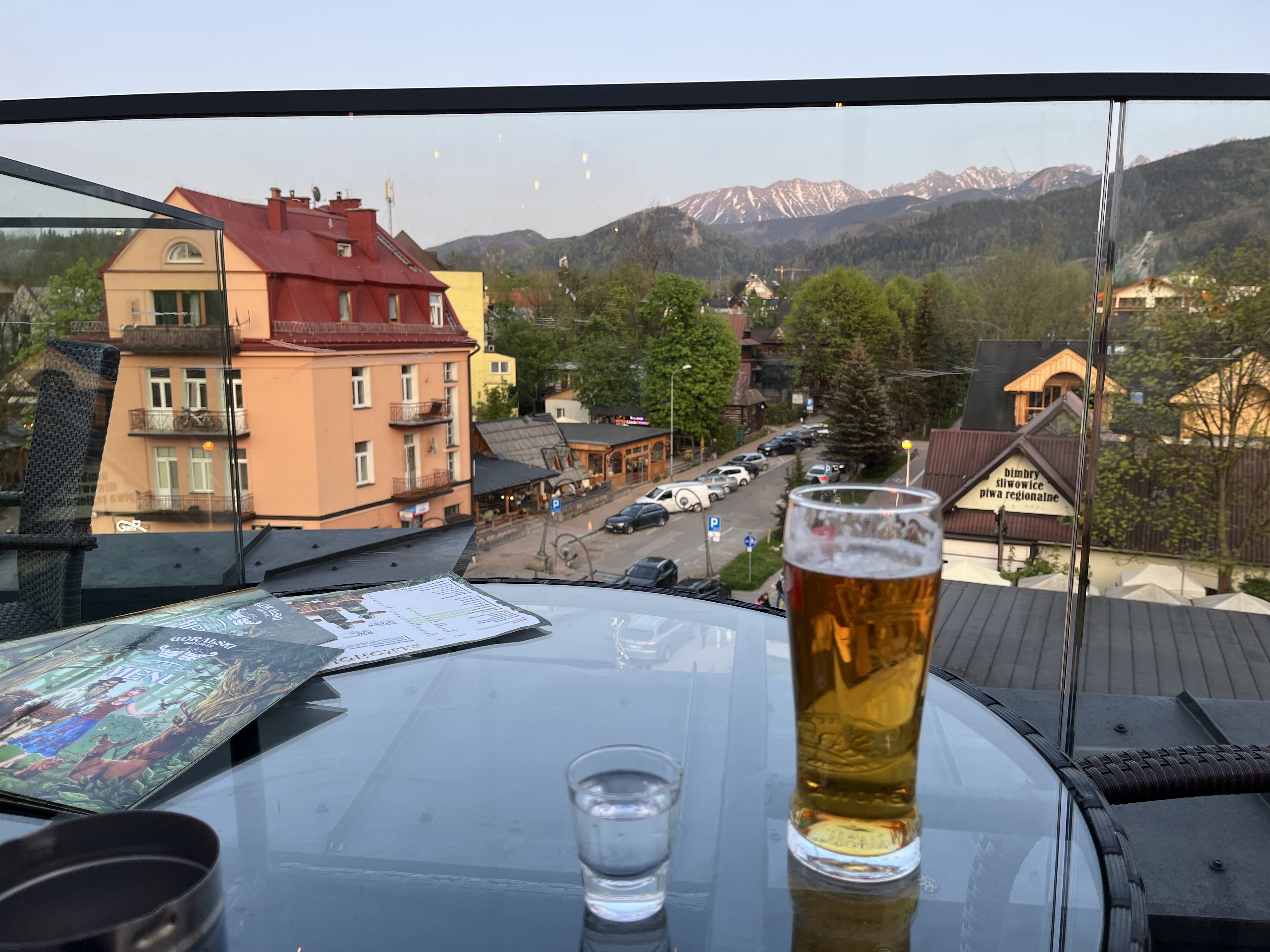 Seara, temperatura la Zakopane cobora sub 10 grade și se făcuse deja destul de răcoare la terasă. M-am încălzit tradițional polonez cu un pahar de vodcă admirând priveliștea.