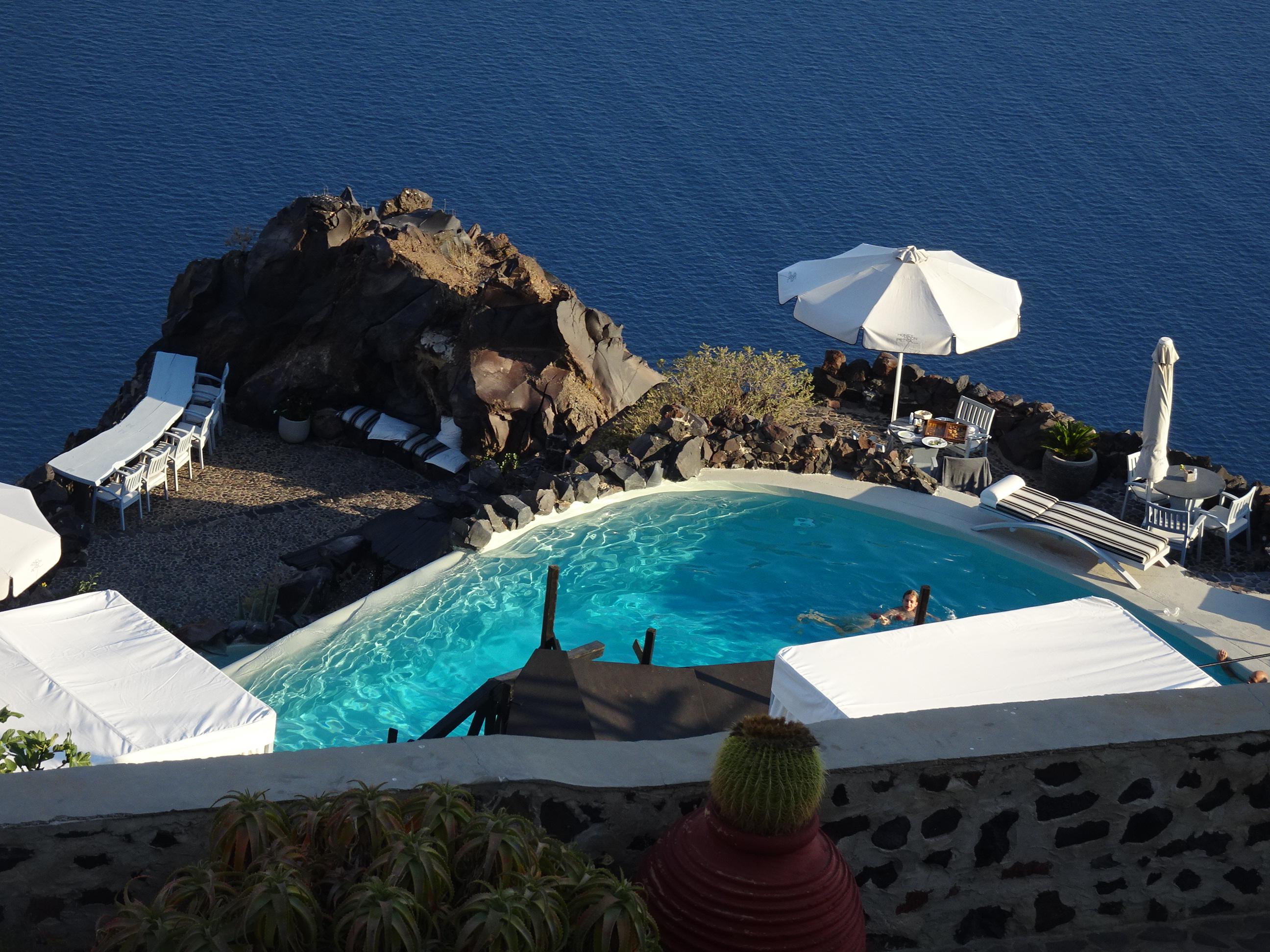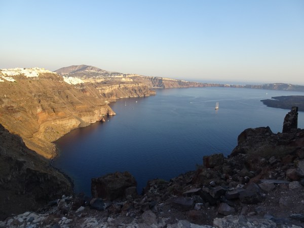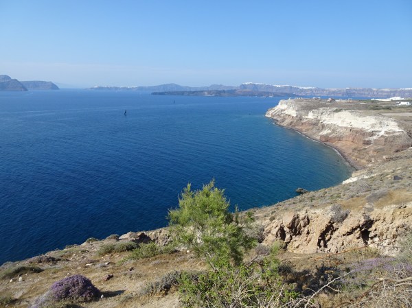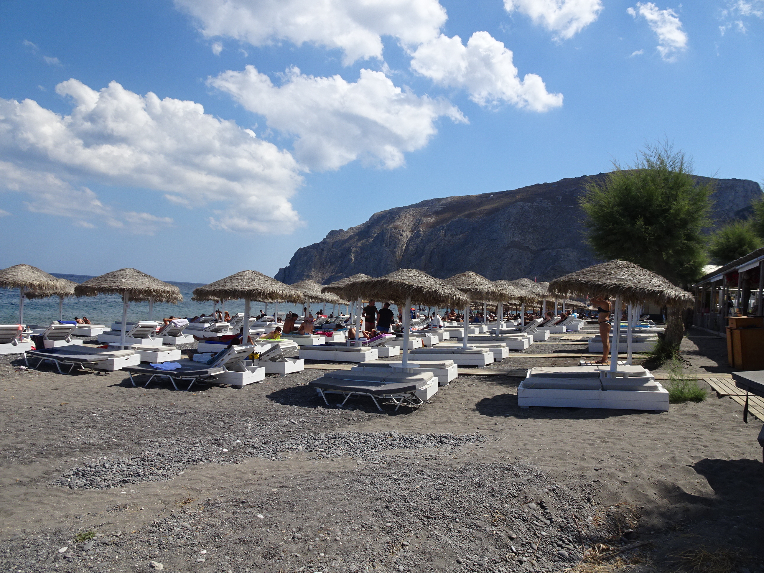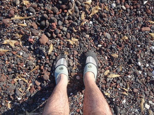 Cum spuneam, plajele nu sunt cea mai mare atracție din Santorini. Majoritatea sunt plaje cu nisip negru, obținut din lava măcinată de valuri. Malul este din stâncă dură, foarte alunecoasă iar în apă nu se poate intra fără încălțări speciale.