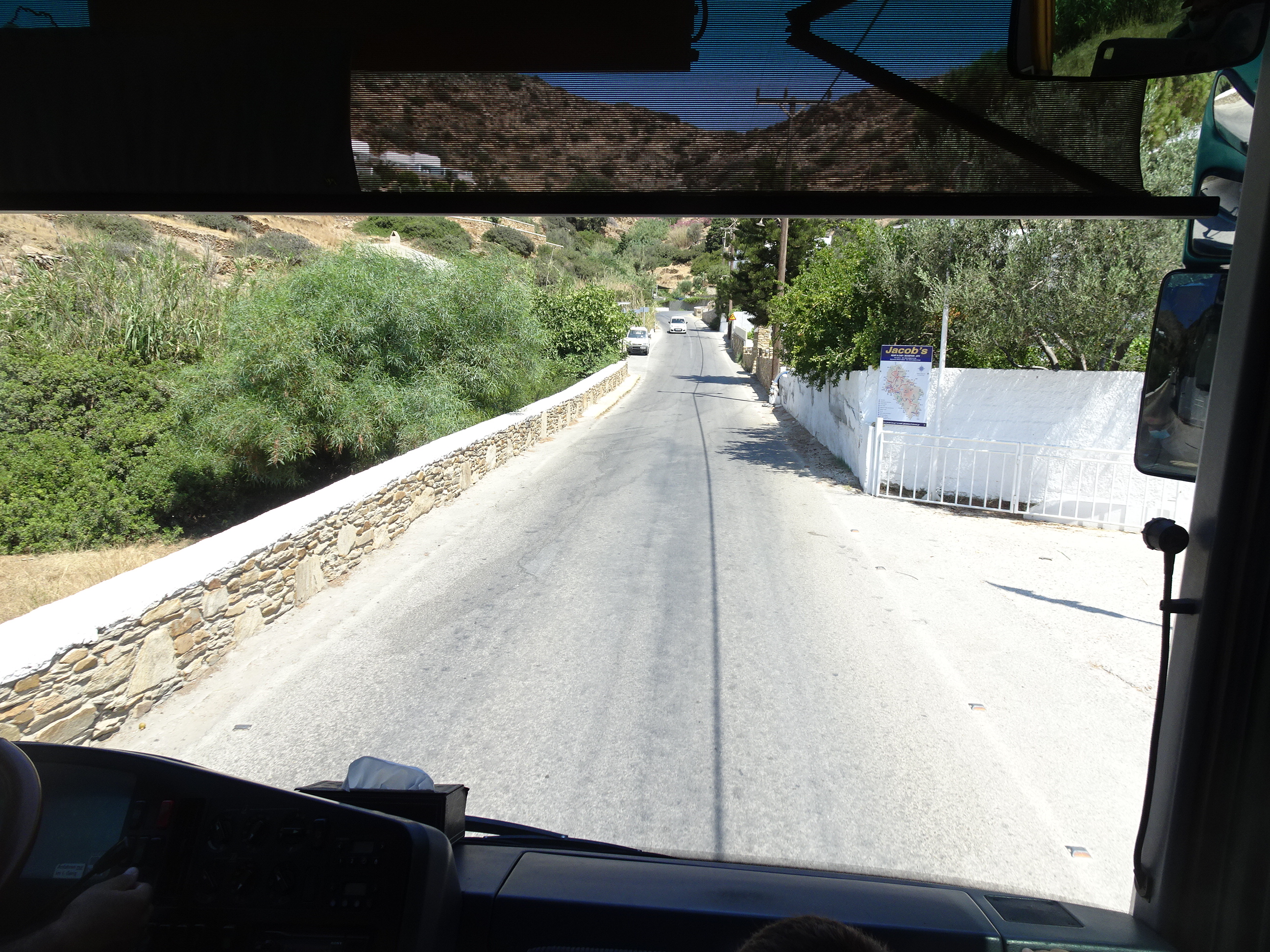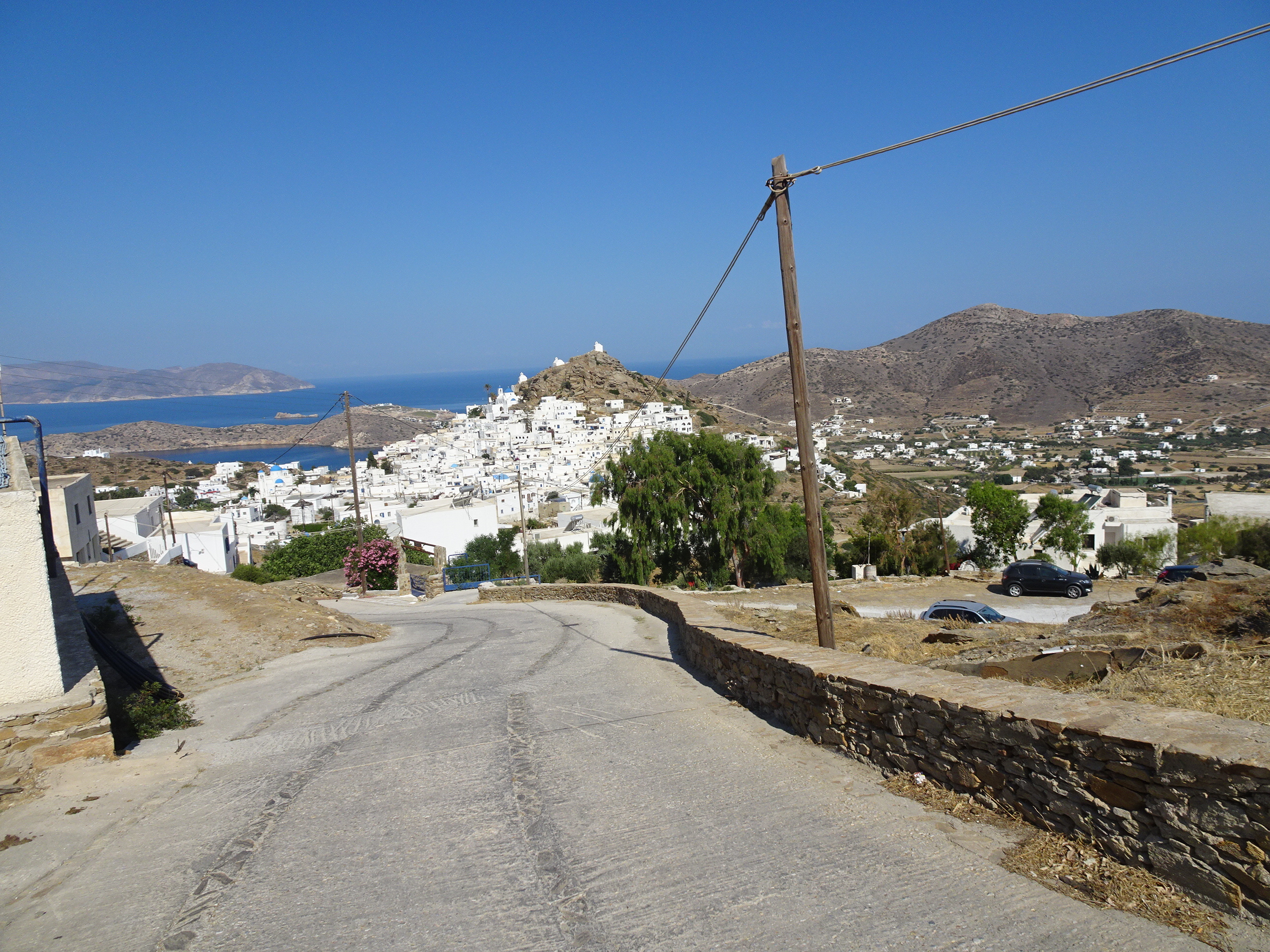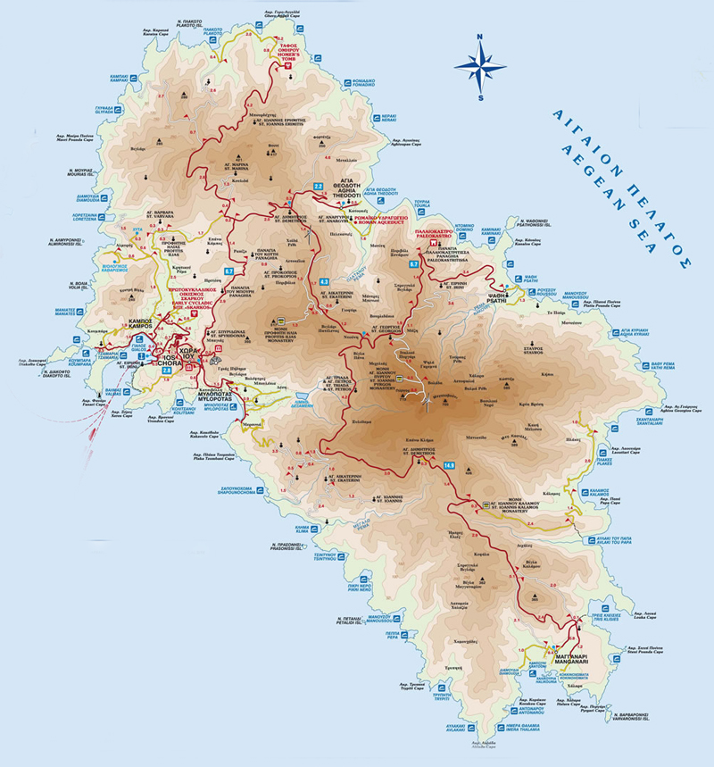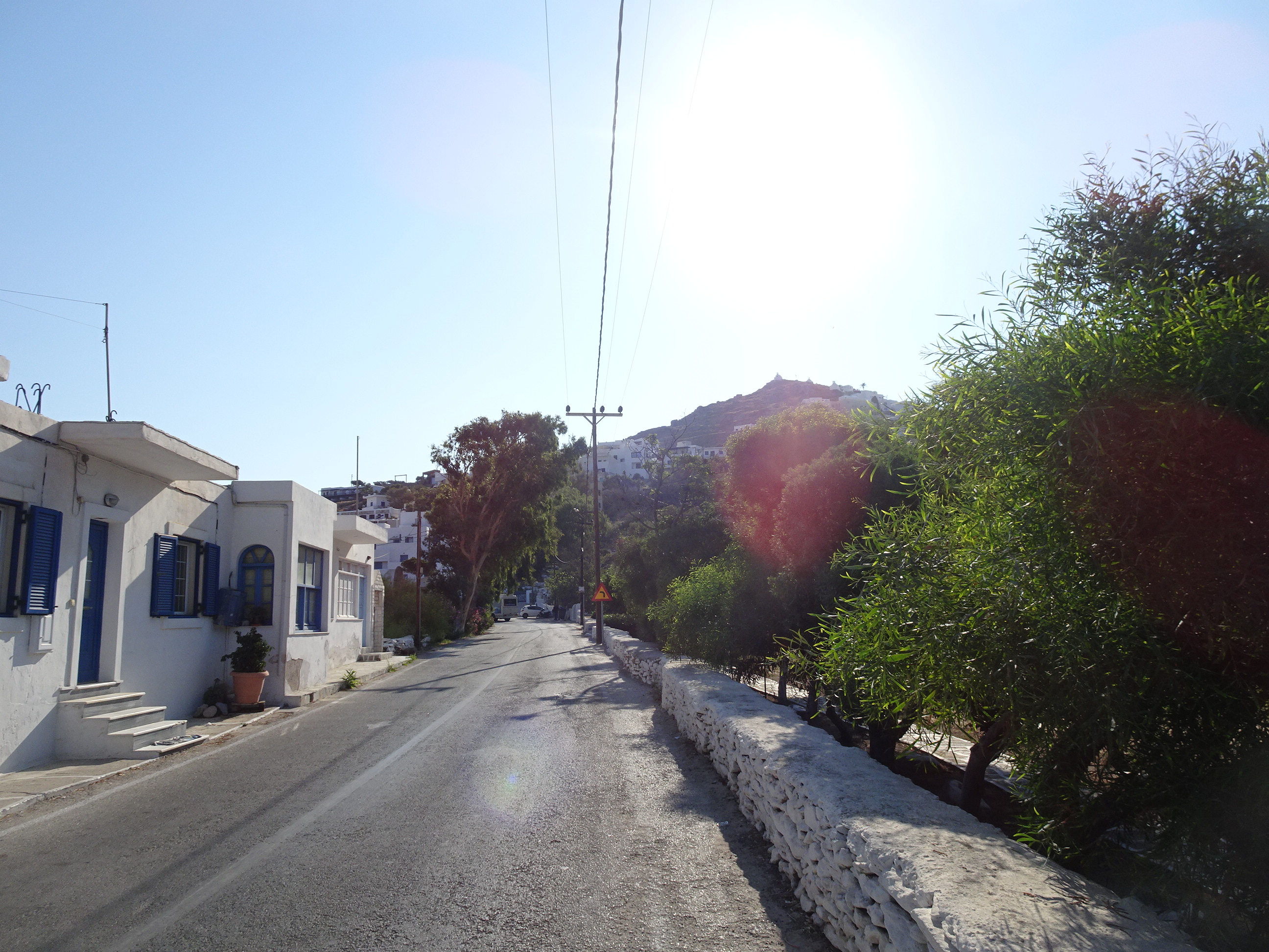 Principala rută turistică din Ios este Port – Chora – Milopotas, rută acoperită de autobuze cu plecări relativ frecvente. La sosire, am preferat însă o drumeție și am luat-o pe jos spre Chora.