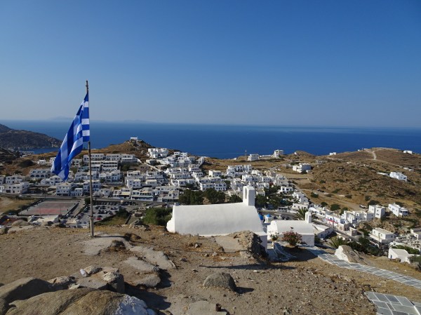 Dealul din Chora și capelele sale văzute de la depărtare