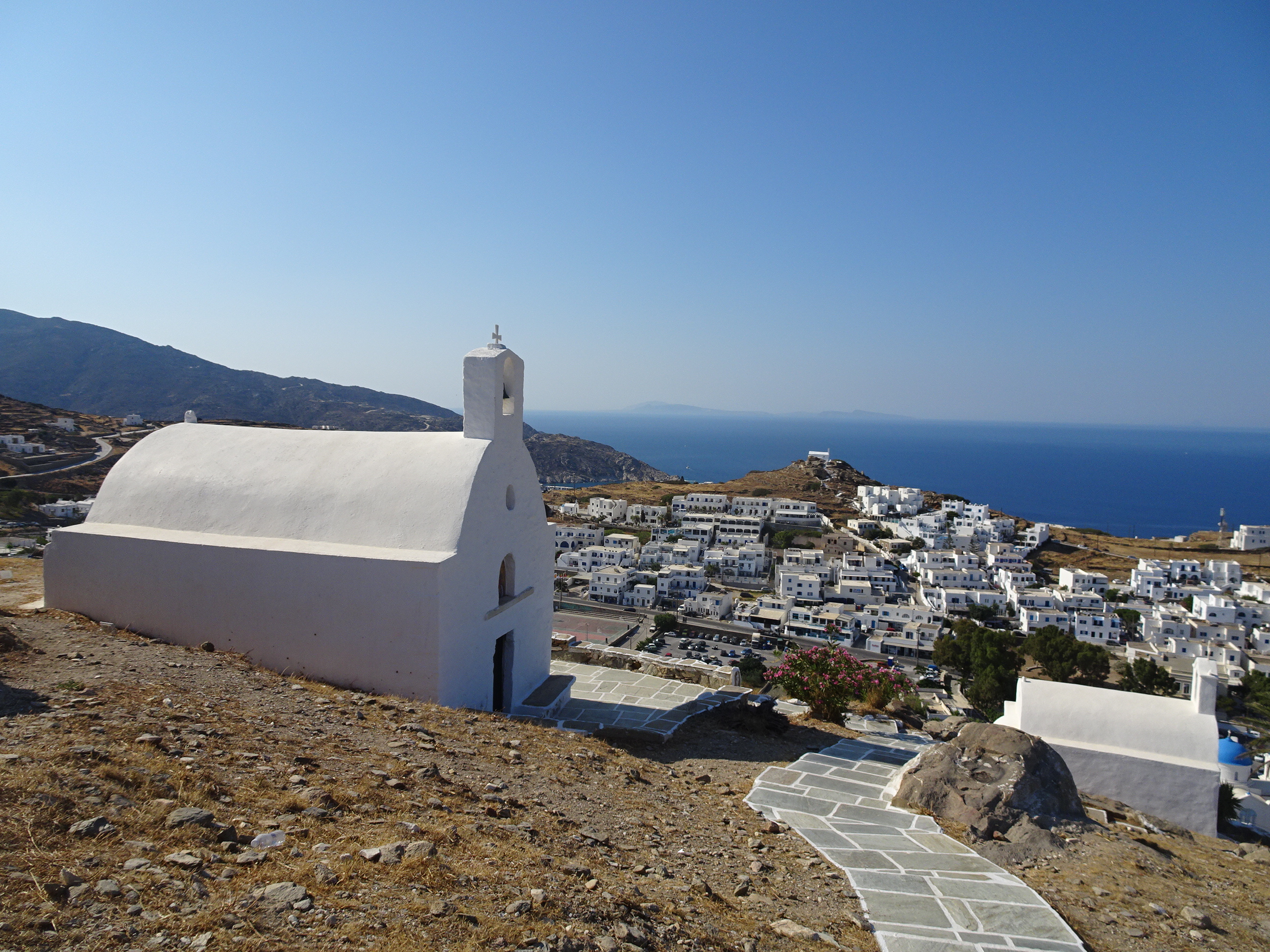 Urcarea spre capelele ortodoxe de pe deal e cel mai frumos lucru pe care îl puteți face în Chora. Drumul este amenajat iar vederile sunt din ce în ce mai frumoase cu cât urci mai sus. Nu e un traseu ușor, mai ales în zilele fierbinți ale verii.