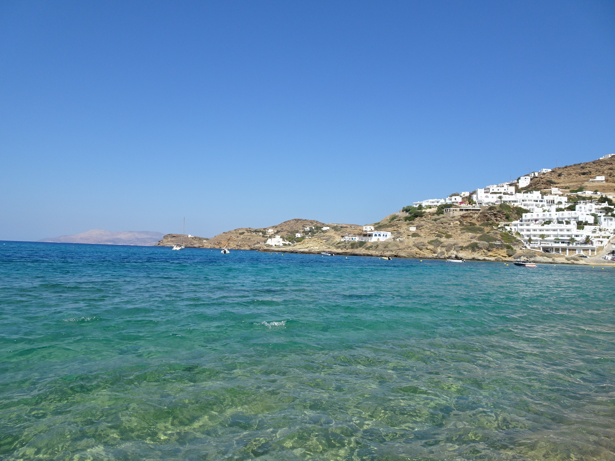 Spuneam la început că am ajuns și pe Ios. Insula se află la 40 de kilometri nord de Santorini. Se poate ajunge acolo cu feribotul în mai puțin de o oră. Vara cursele sunt dese și se poate face ușor o excursie de câteva ore pe Ios. Am plecat în zori din Santorini în ideea de reveni după amiaza înapoi.