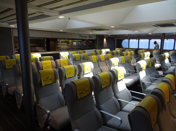 Revenirea în Santorini am făcut-o cu o navă rapidă, mai luxoasă