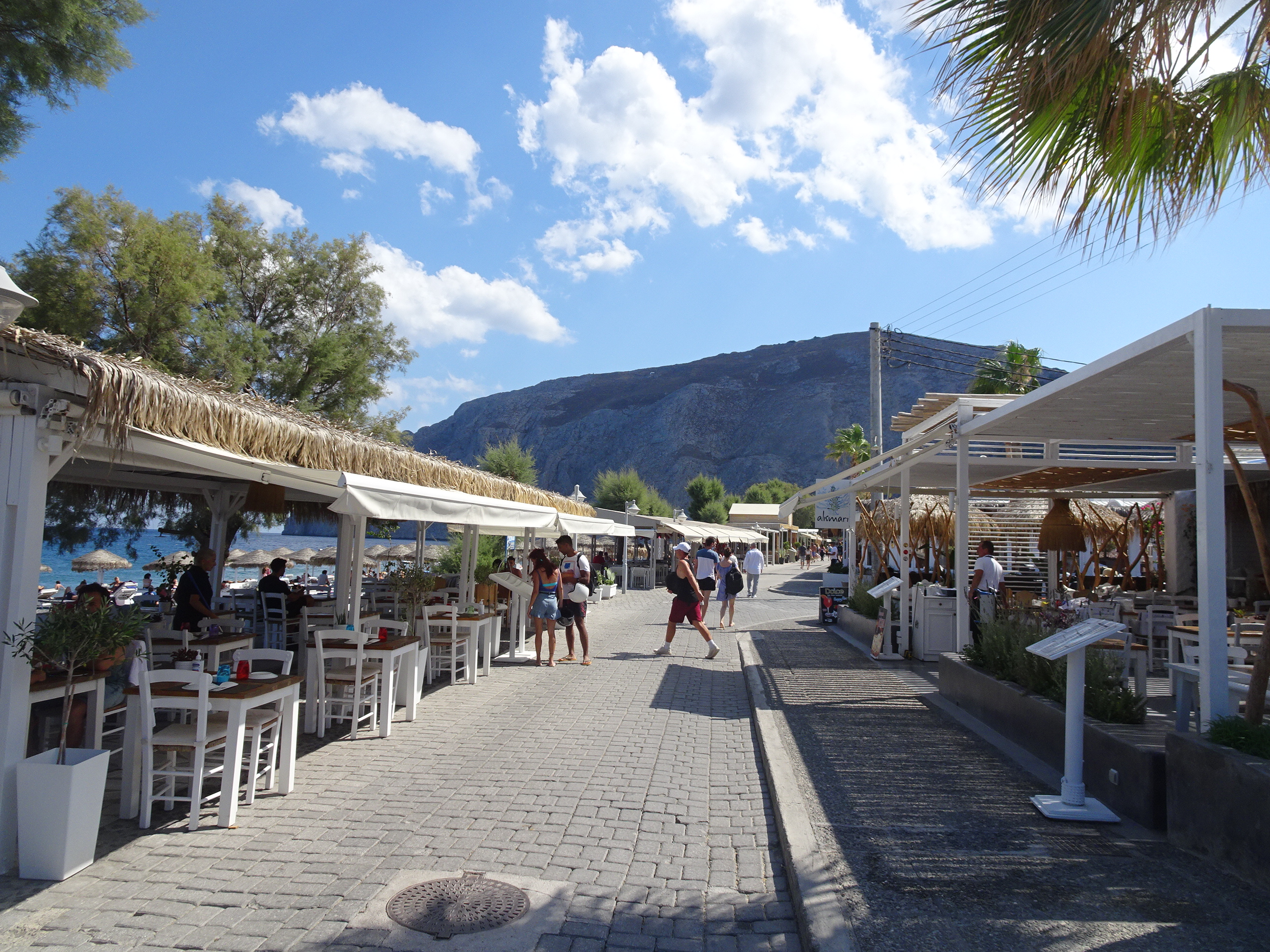 Stațiunea Kamari este alternativa mai low-cost la satele de pe Caldera