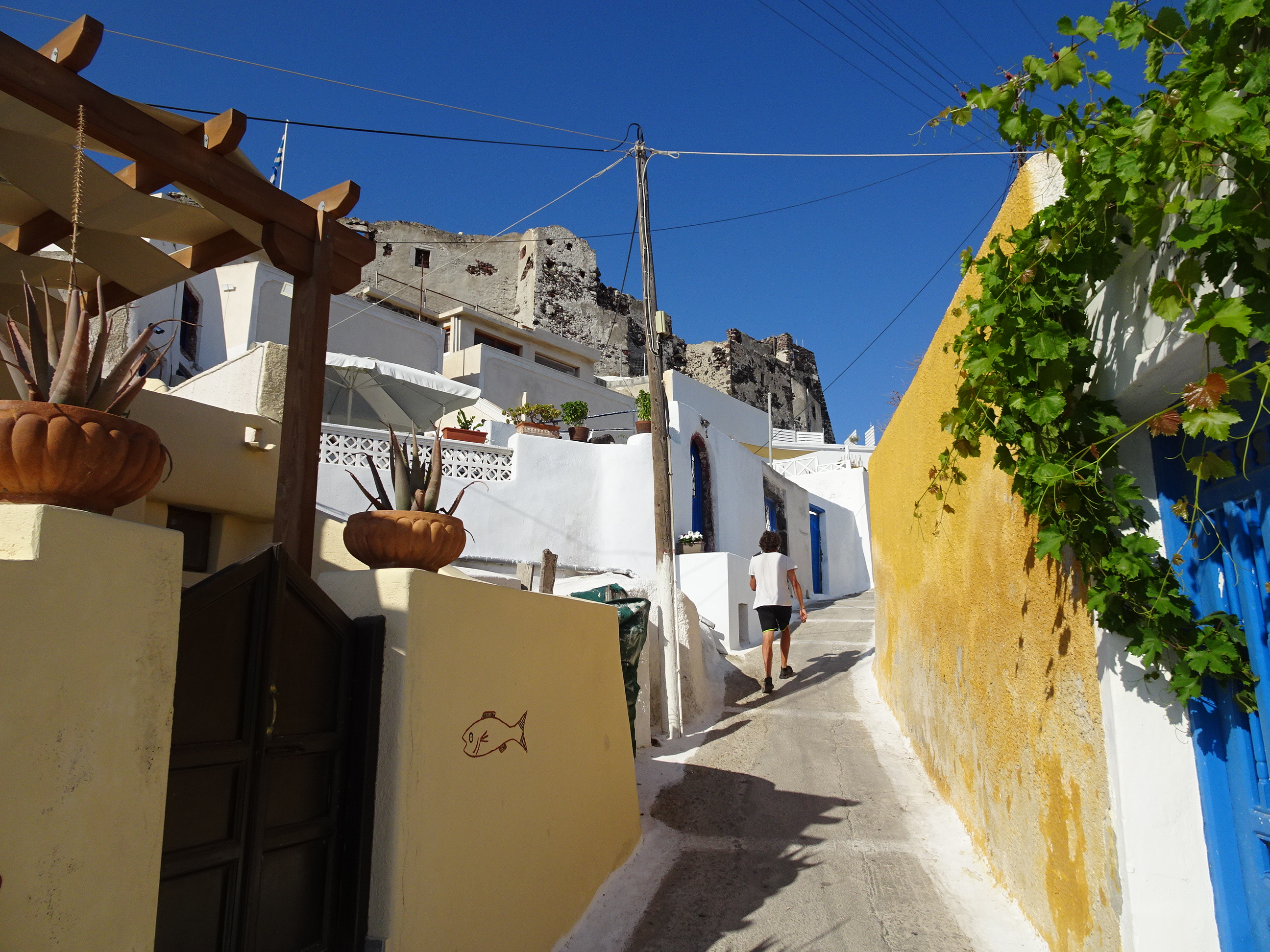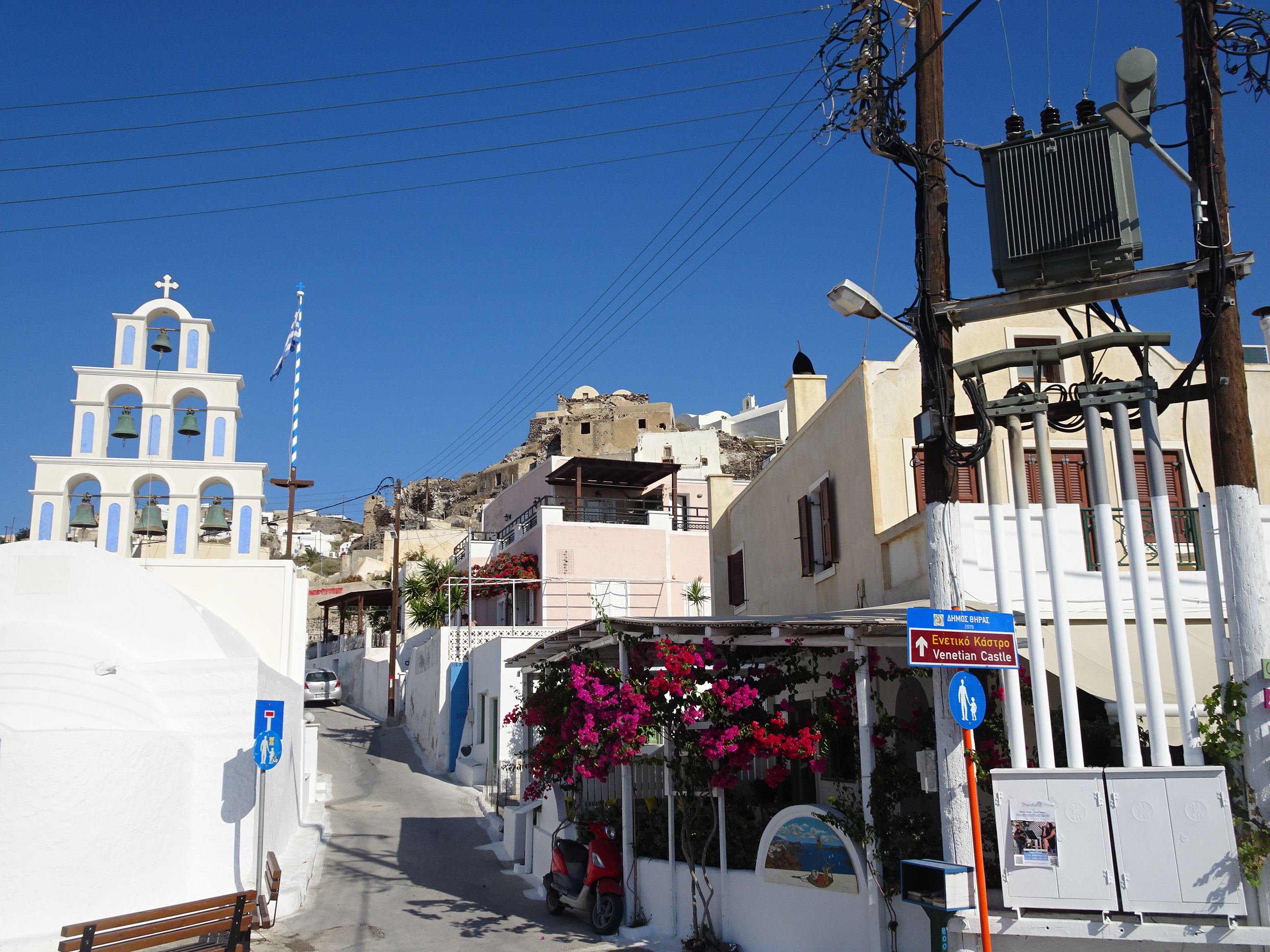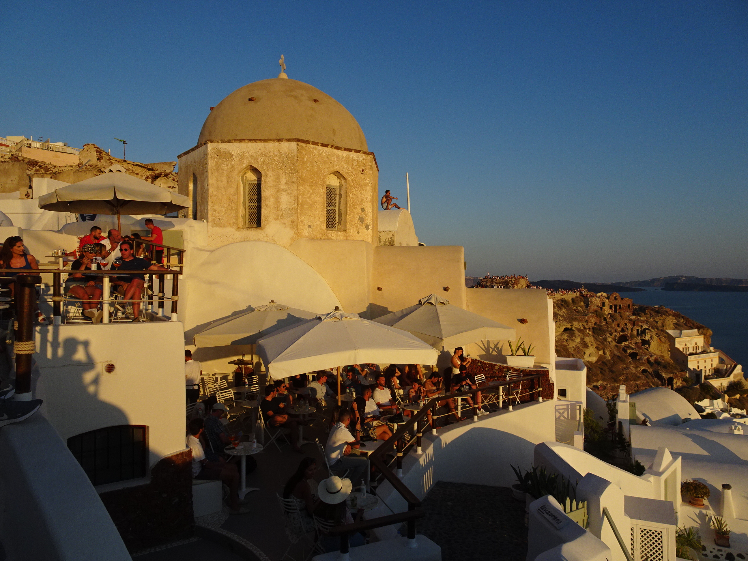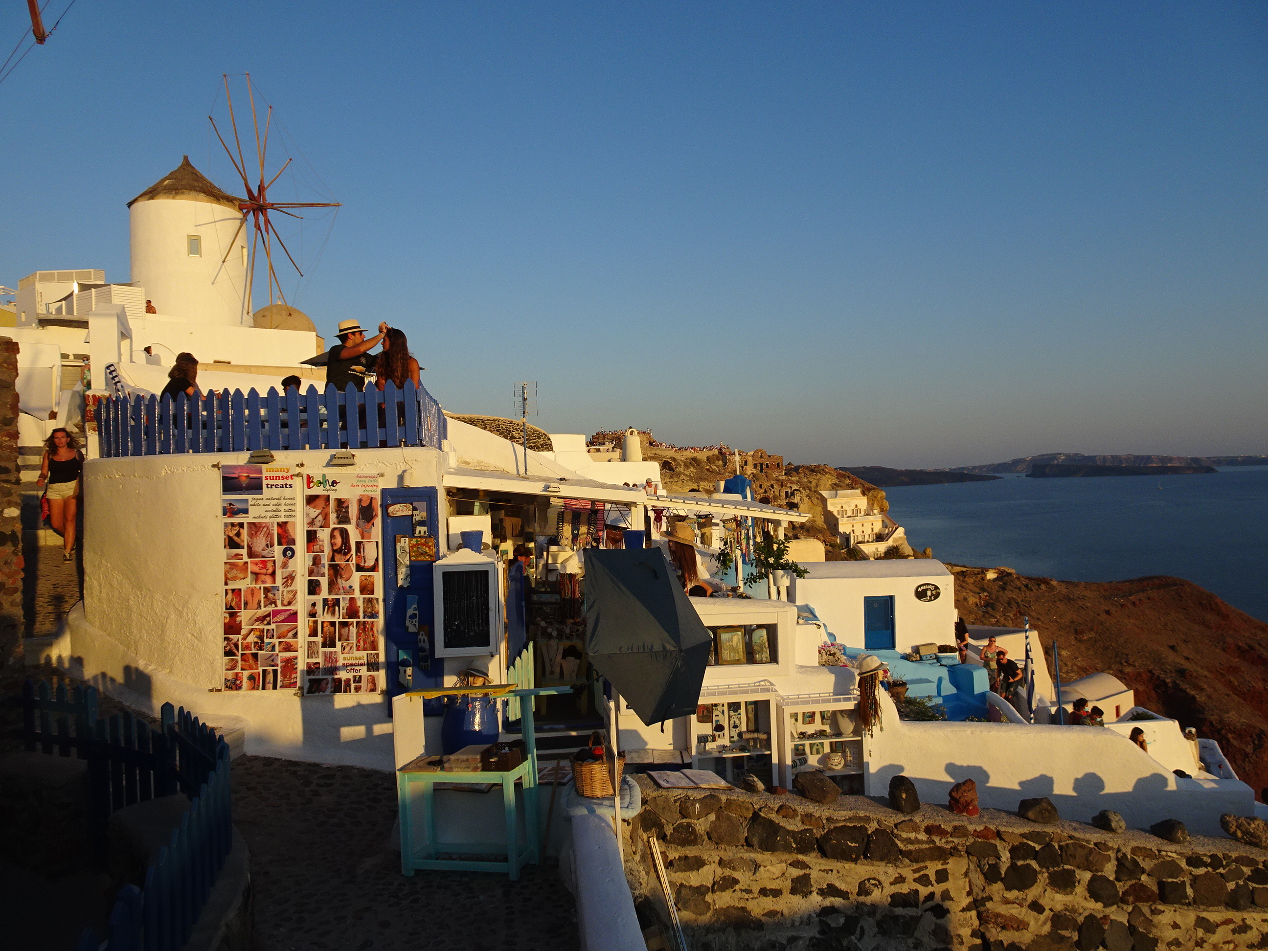 Castelul venețian din capătul nordic al satului este locul cel mai bun pentru a vedea apusul. Problema e că toată lumea știe asta, iar în serile cu cer senin se strâng acolo mii și mii de oameni.