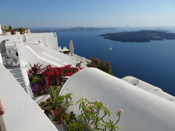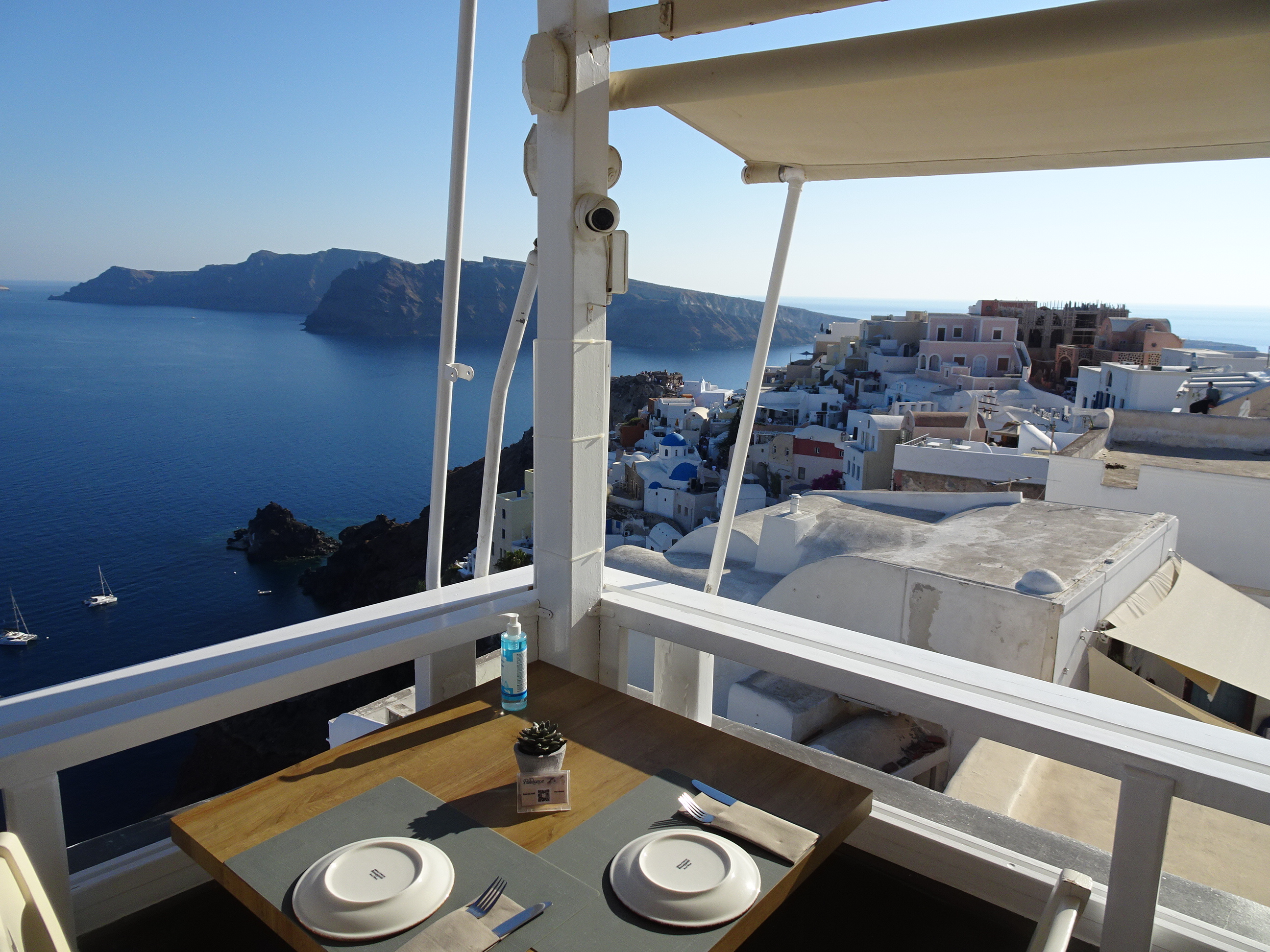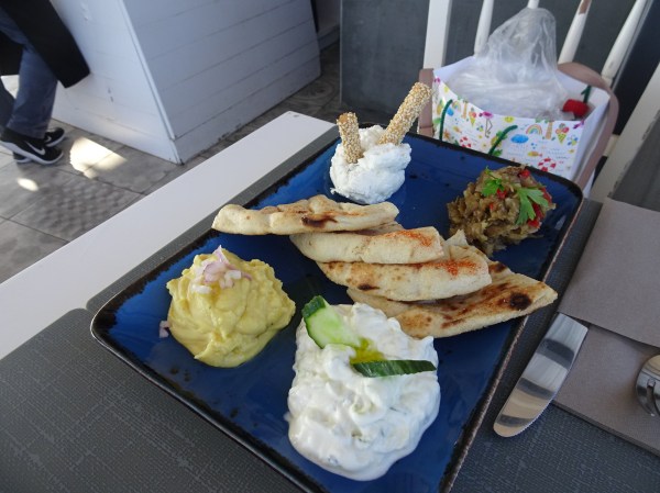 Am mers mai întâi la masă la restaurantul Pelekanos. De pe terasa rooftop a acestuia se vede o panoramă splendidă.
