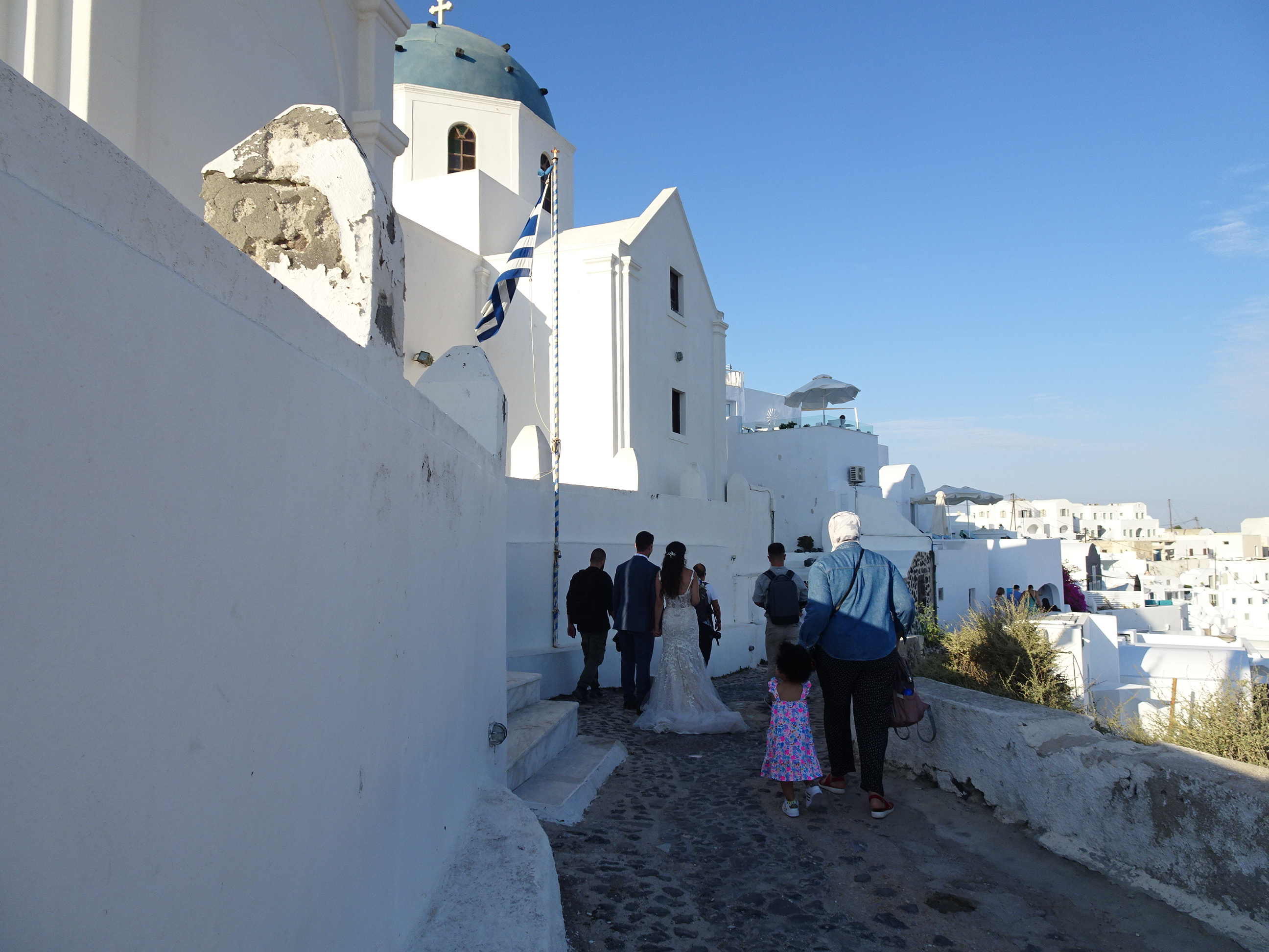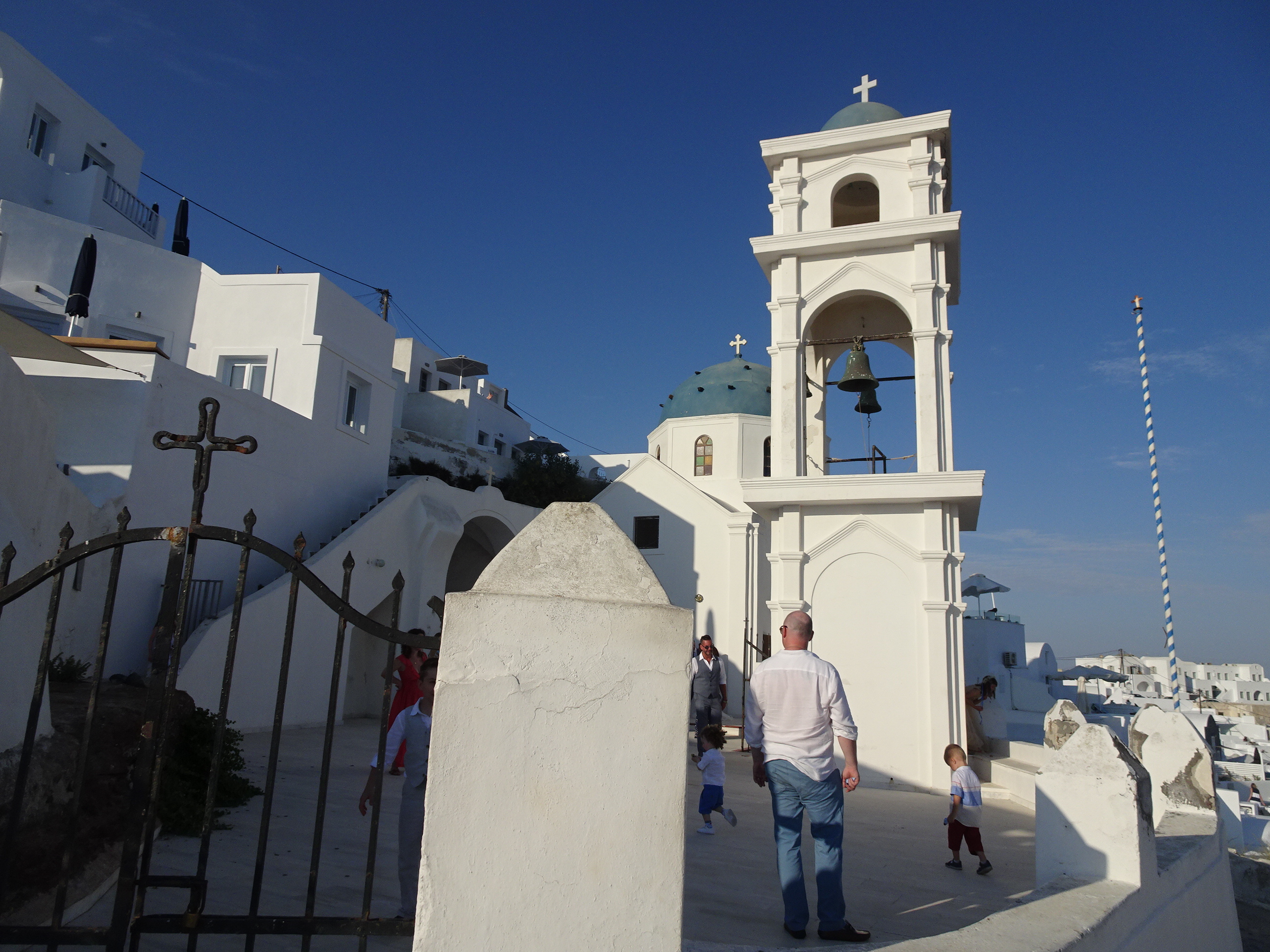 Ultima oprire a fost Imerovigli, un loc unde nu ajunsesem în prima noastră vizită. La biserica din sat am avut plăcerea să asistăm la o nuntă locală