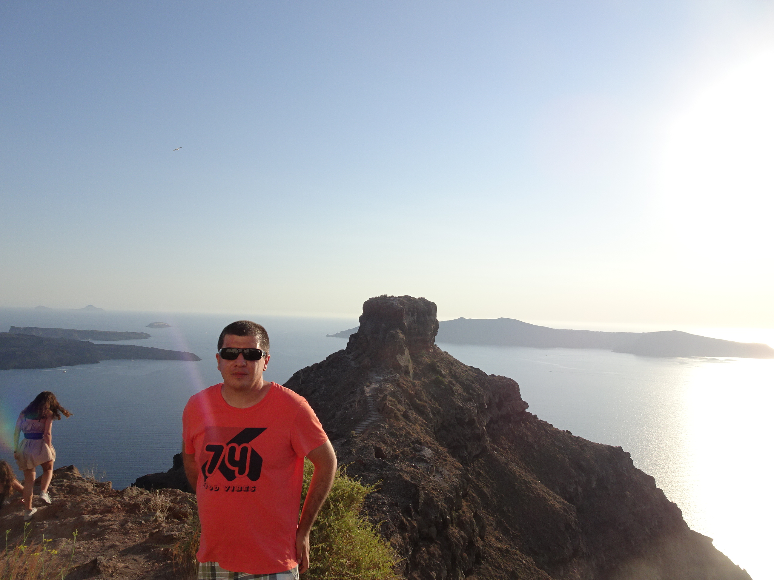 Pentru că n-am găsit loc la terasele din nordul Oia (nu era loc în picioare, nu mai zic de masă) am ales să admirăm apusul într-un loc mai intim, pe plaja Katharos aflată la doi kilometri