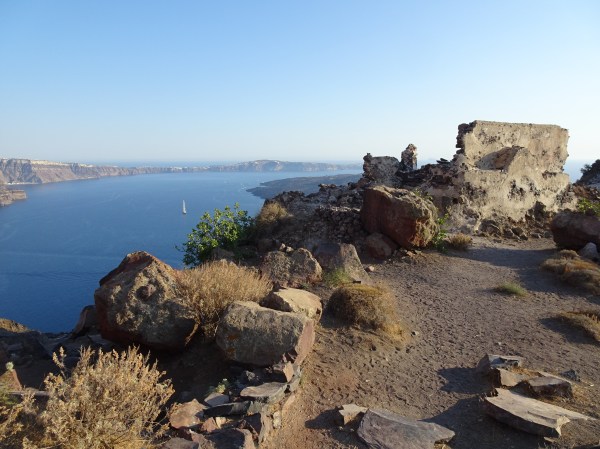 Sunt câteva ruine ale unei cetăți pe Skaros, dar principala atracție sunt panoramele splendide către toate direcțiile Calderei