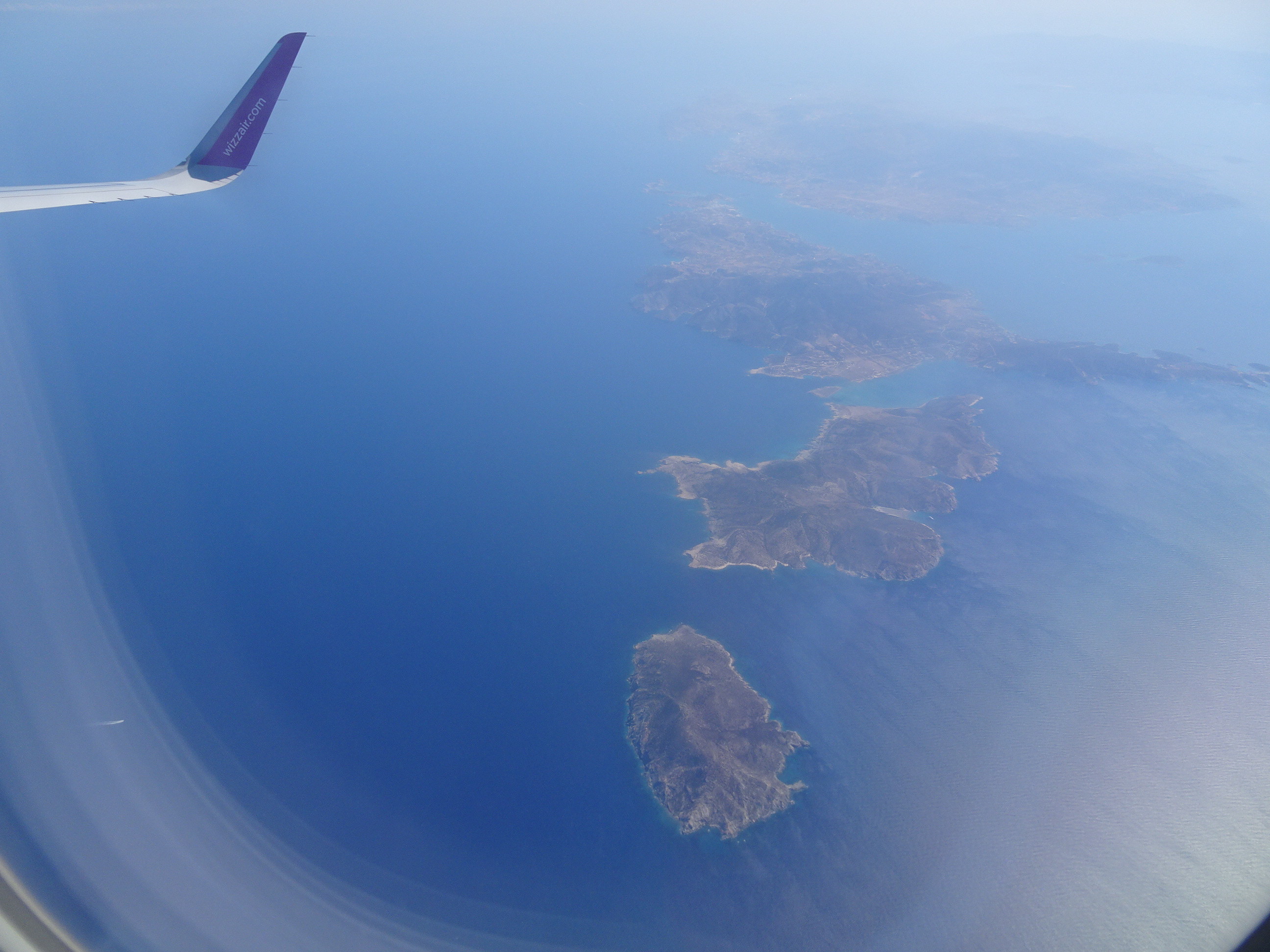 Am decolat dimineața din București cu un avion Wizz Air iar după o oră și câteva minute deja admiram de sus insulele în coborârea spre Santorini.