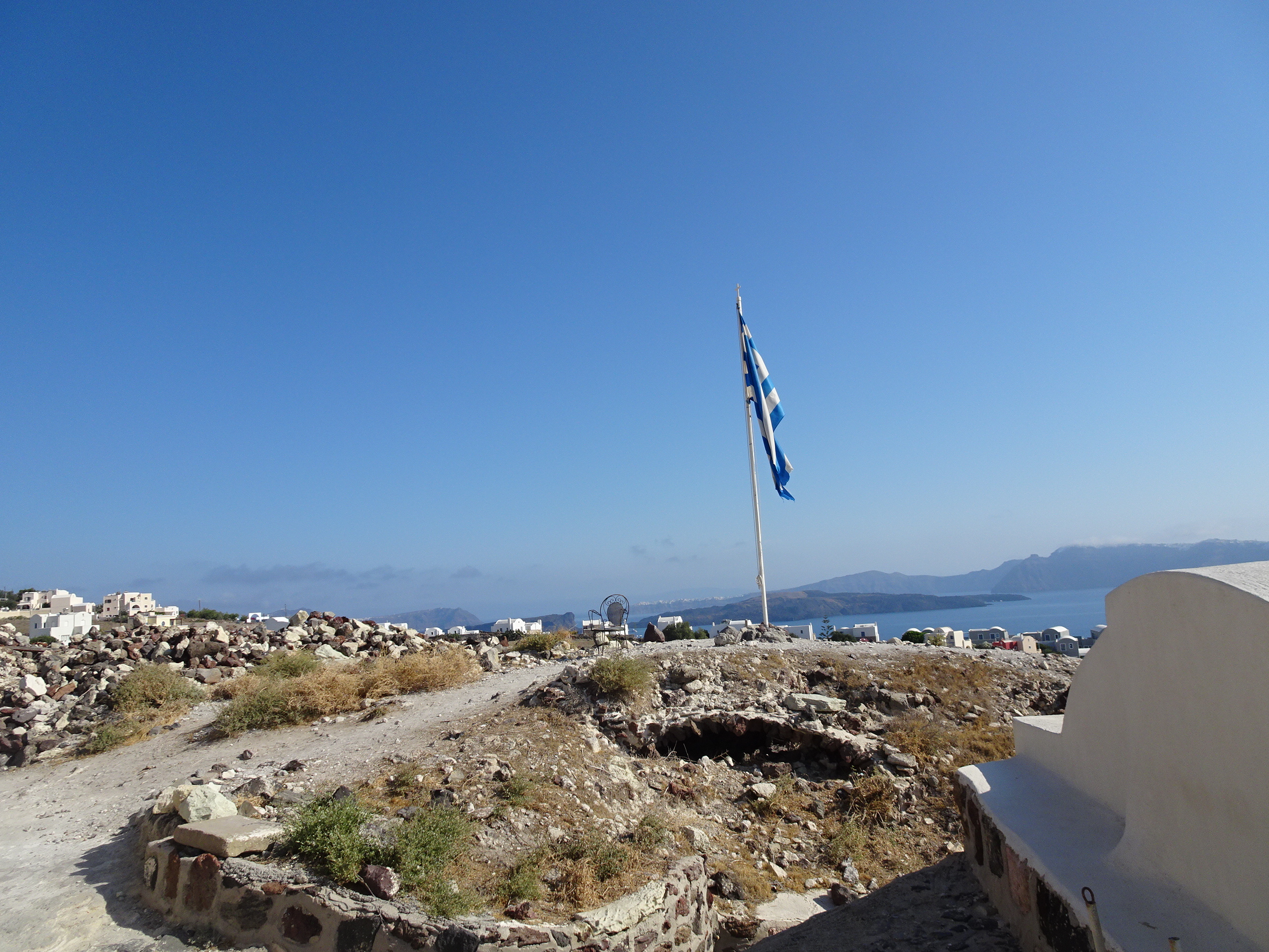 Steagul Greciei în punctul cel mai înalt din Chora
