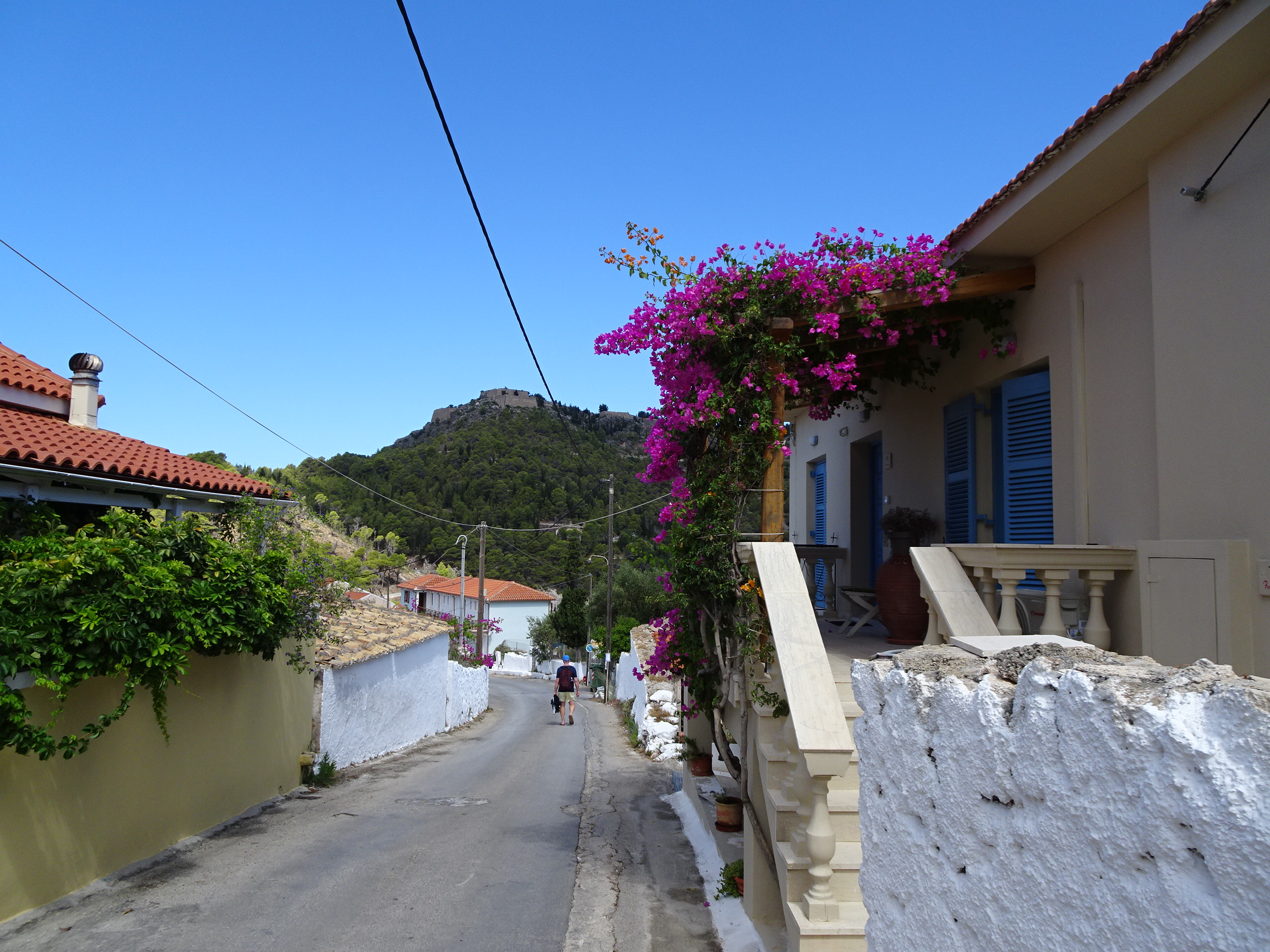 Am poposit apoi mai la est de capitală unde se află castelul medieval Agios Georgios. Acesta este construit strategic în vârful unui deal singuratic și oferă vederi splendide peste mare parte din insulă.