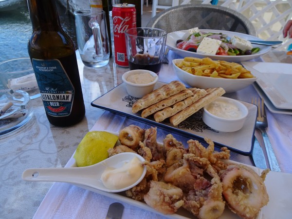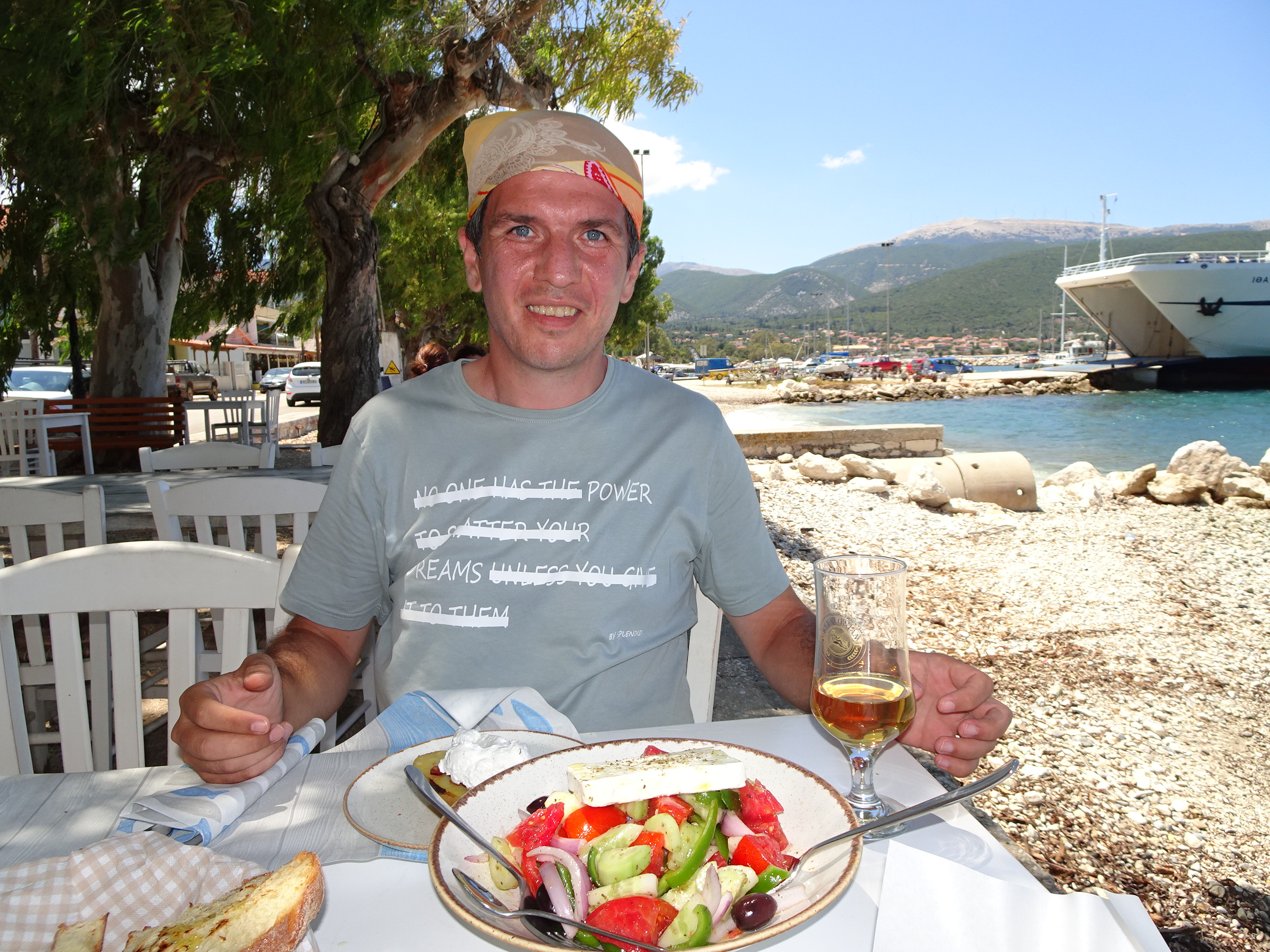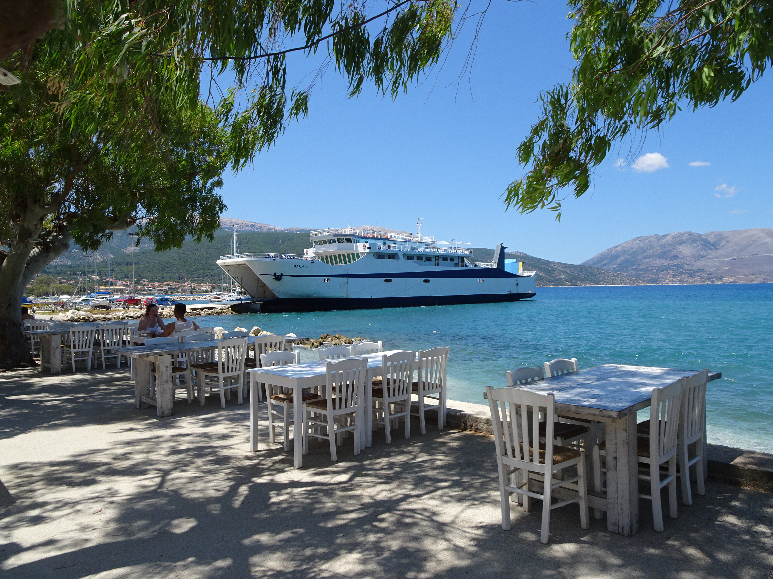 Din Sami se poate merge cu feribotul spre Ithaca. Am lăsat Ithaca pentru o vizită viitoare și am poposit la Il Familia – un restaurant cochet la malul mării.
