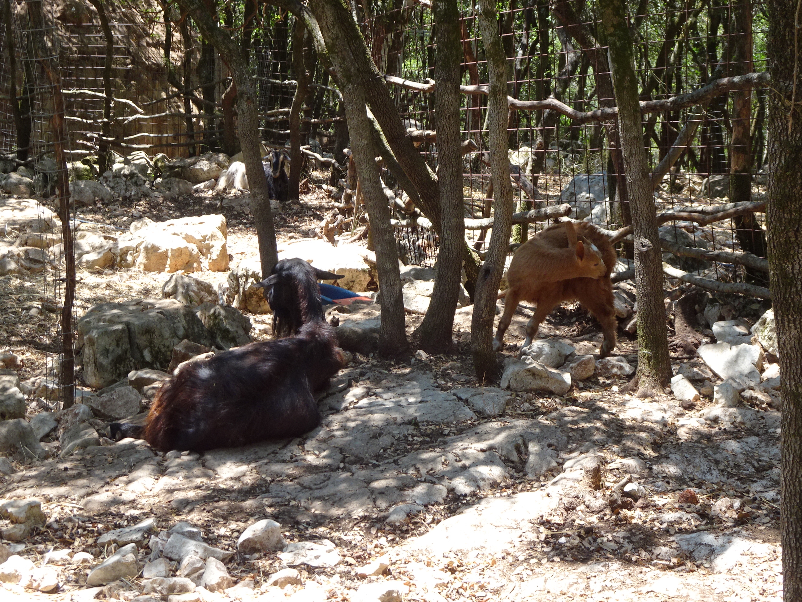 Pe drum am întâlnit o mulțime de capre. Sunt peste tot prin zona centrală a insulei. Caprele se cațără pe stânci și mănâncă frunze la marginea drumului..