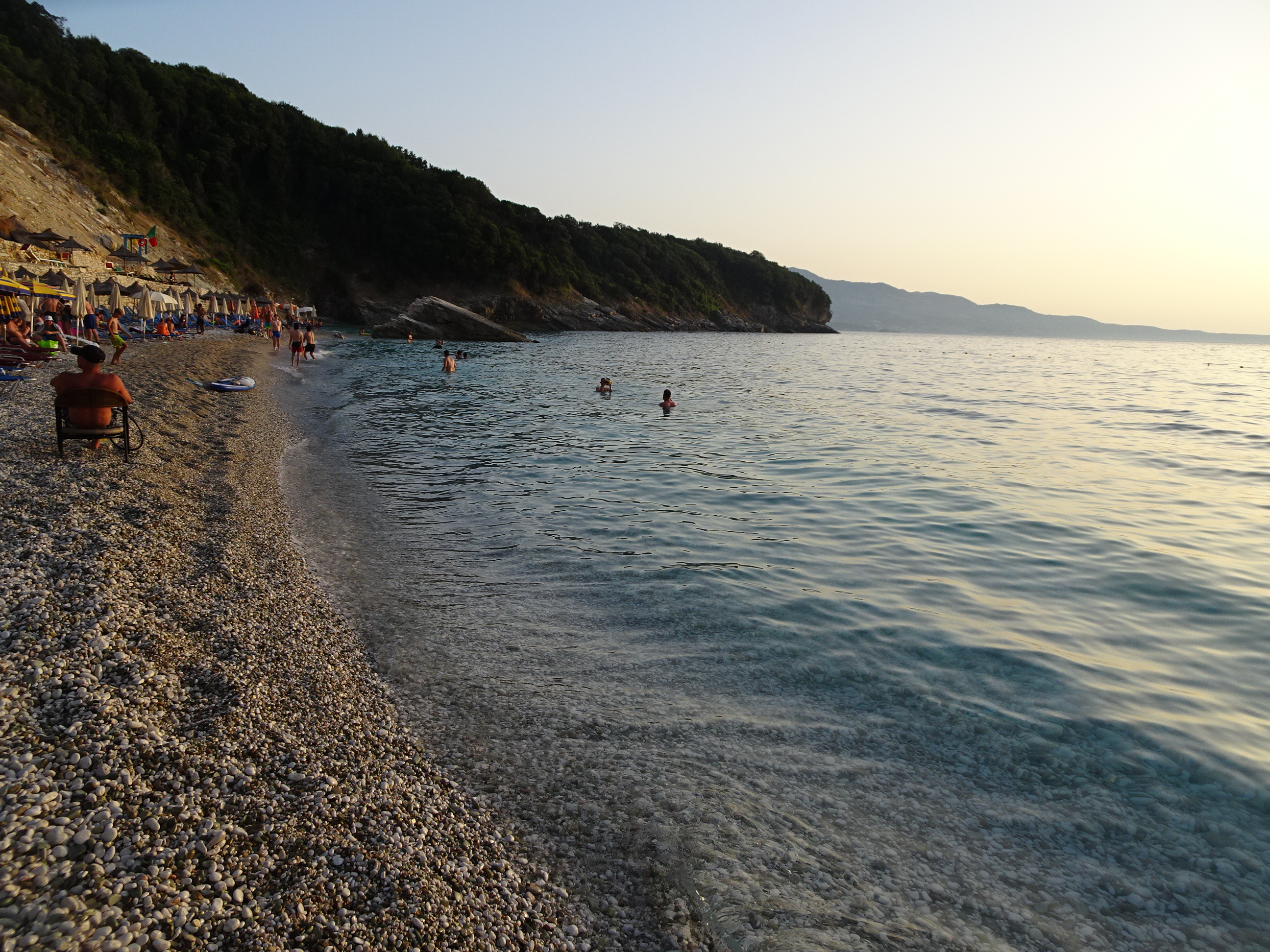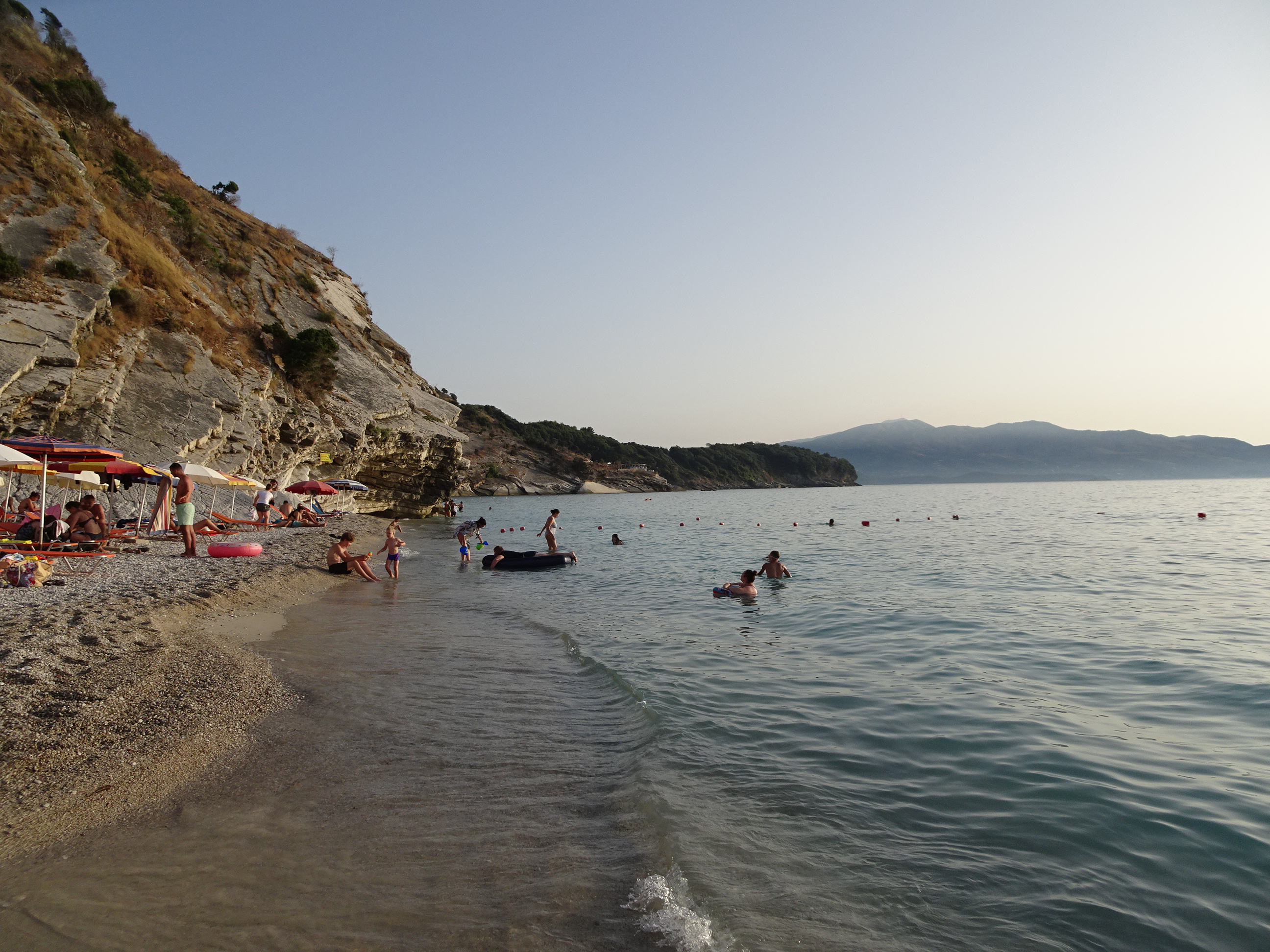 Înainte de lăsarea serii am mers la plajă. O baie în mare era modul perfect de a încheia o zi toridă. Am mers la Pulebardha, una din cele mai frumoase ale țării. Pentru a merge acolo (mai repede) am condus 3 kilometri pe un drum accidentat.
