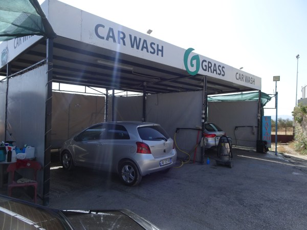 O altă ciudățenie cu mașina închiriată este că mi s-a cerut să o duc la spălătorie înainte de retur. E drept, am condus-o pe tot felul de drumuri neasfaltate și era cazul. Astfel, ultima mea oprire în Albania a fost spălătoria auto. Cât s-a spălat mașina am servit o cafea și am povestit cu câțiva localnici despre experiența mea în Albania.