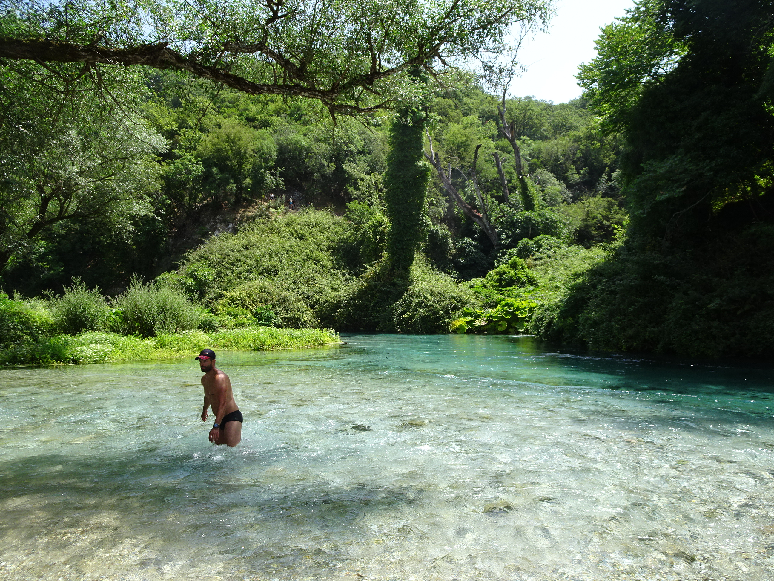 Până a trece munții am oprit la parcul național Syri i Kalteri, mai cunoscut turiștilor ca Blue Eye. Acesta este unul din cele mai spectaculoase locuri naturale din Albania.