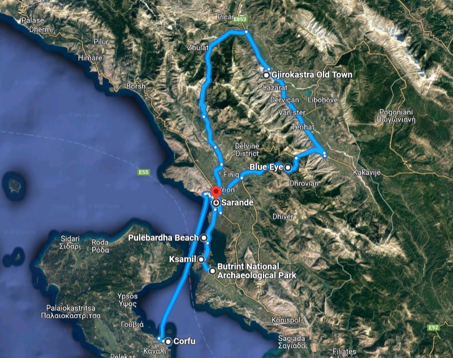 Pare ironic dar cel mai rapid și convenabil mod de a ajunge în sudul Albaniei, este un zbor spre Corfu în Grecia. Aeroportul din Tirana este mult mai departe. Altfel, din Corfu se poate ajunge mult mai ușor cu feribotul direct în Sarande. Așa am ajuns și eu acolo, profitând de zborurile directe spre Corfu din București lansate de Wizz Air. Am petrecut în Albania 2 zile, iar timpul a fost suficient pentru a vedea cele mai frumoase locuri din sud.
