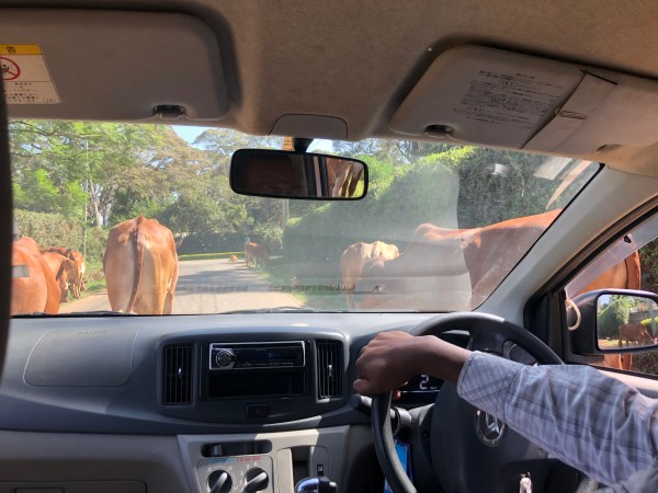 După o scurtă odihnă, a sosit șoferul și am plecat în tur. Am trecut printre terenuri de golf, vile luxoase și palate prin cartierul înstărit Karen, dar chiar și așa am dat de turme de vaci pe drum.