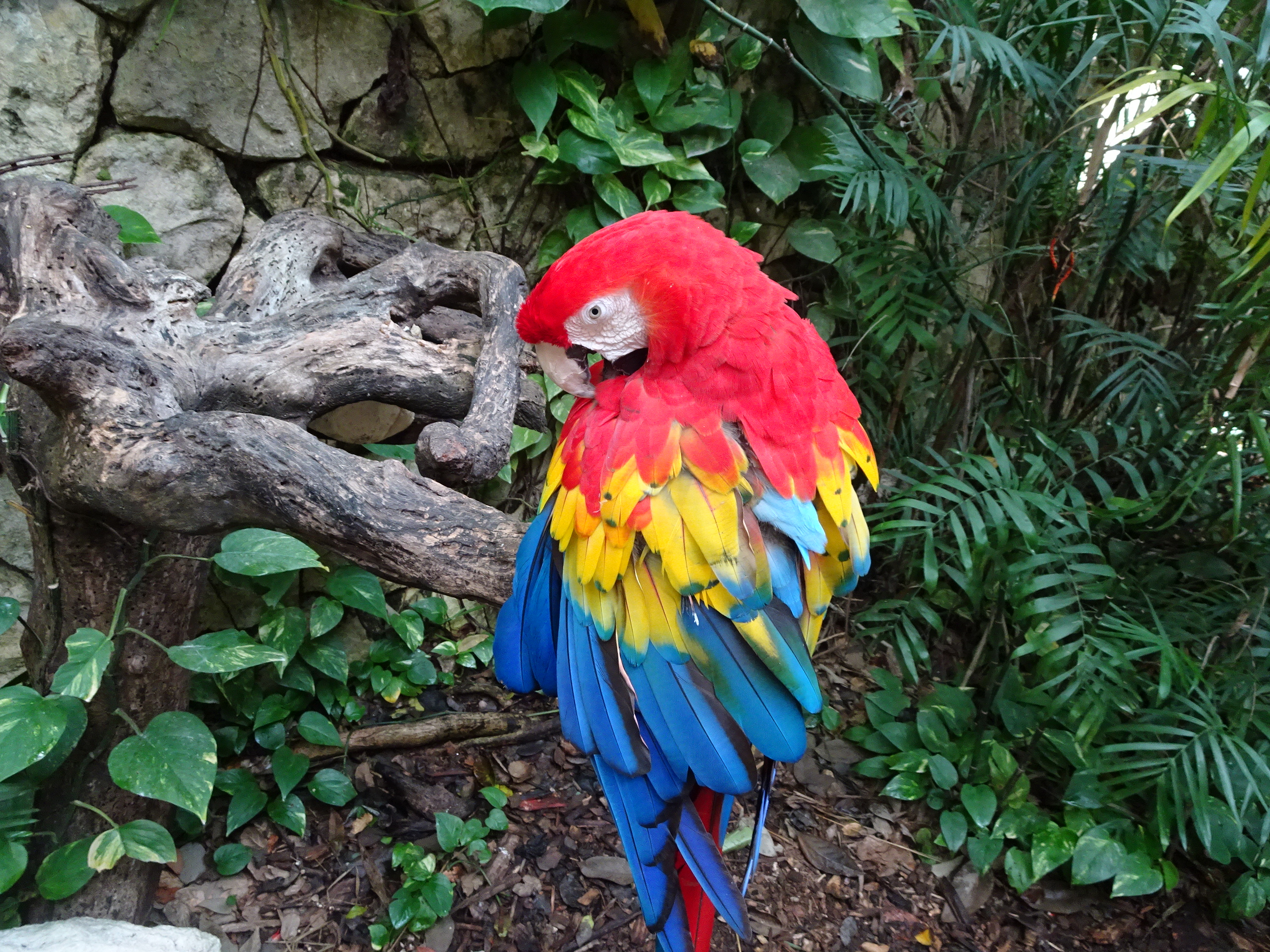 De la intrare am putut admira zeci de papagali colorați și flamingo roz.
