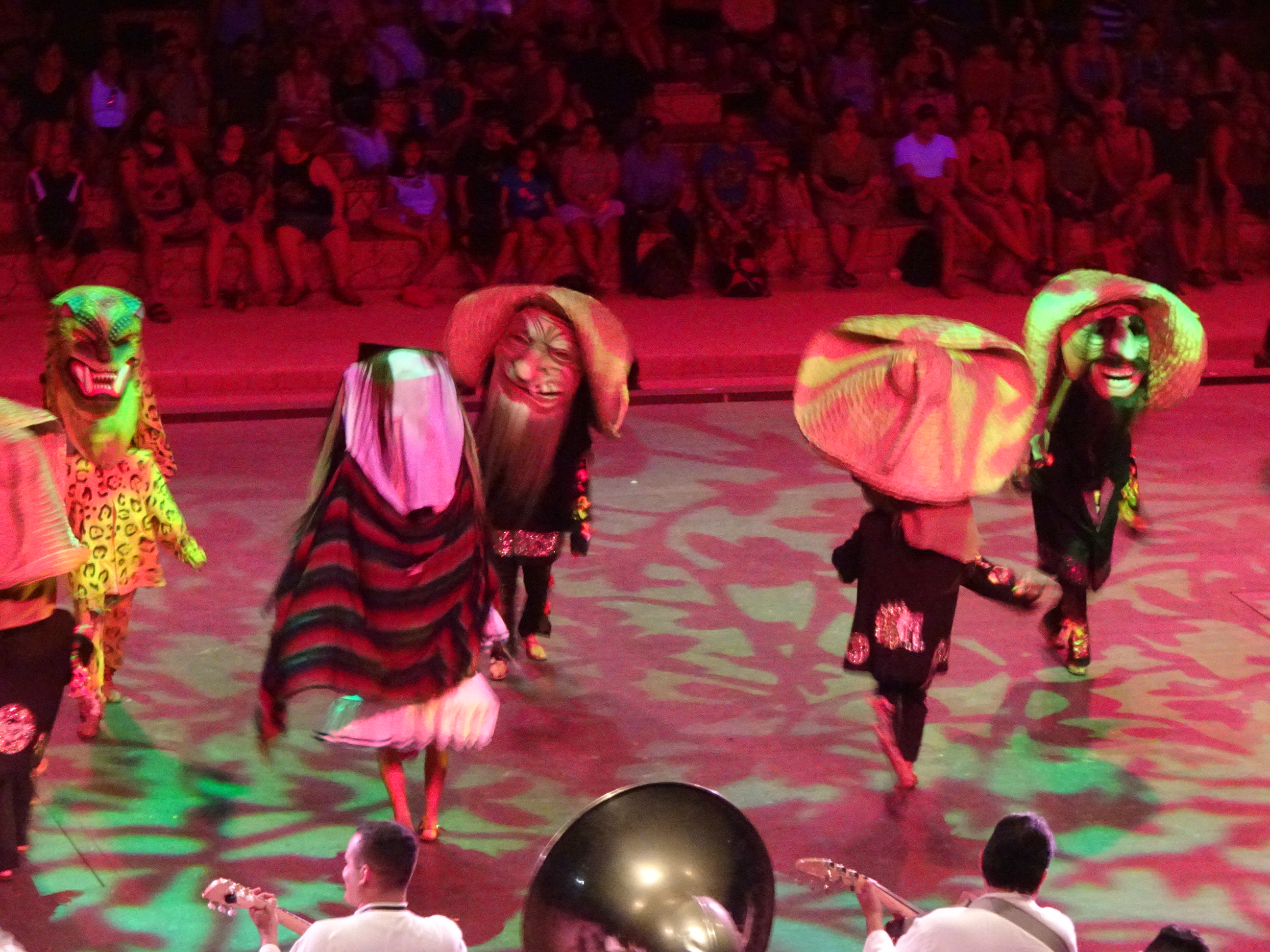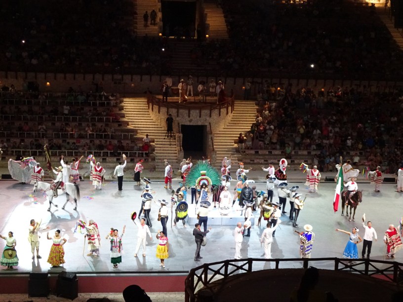 Prima jumătate din spectacol a fost o prezentare a istoriei Mexicului, începând de la tradițiile triburilor băștinașe, la sosirea conchistadorilor, la creștinarea popoarelor.