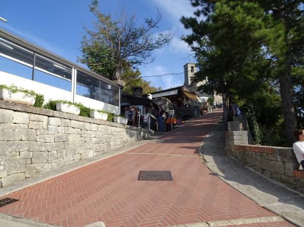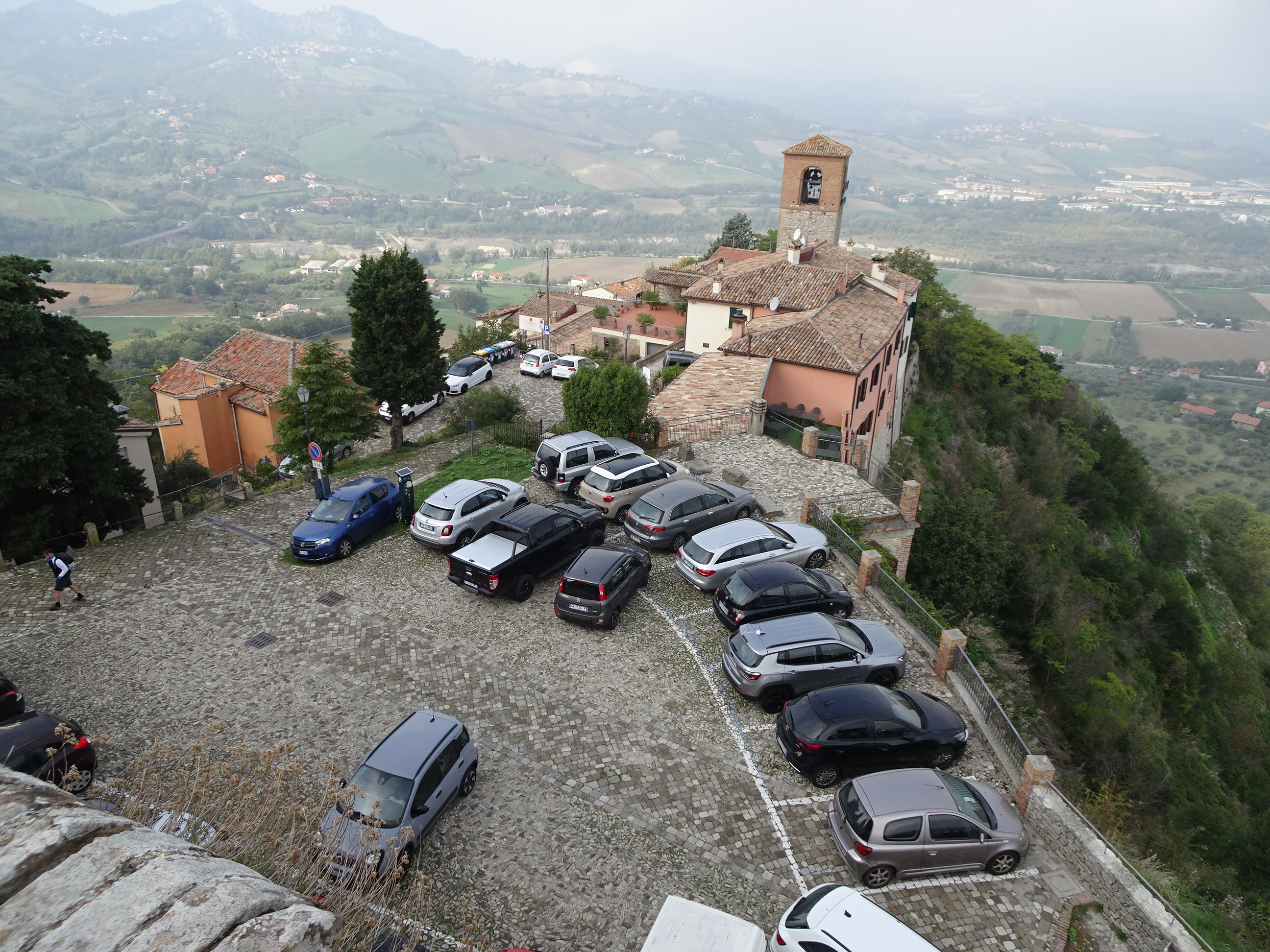 Principala (și singura) atracție din San Marino este vârful dealului Monte Tirano. Acolo se află cele 3 turnuri, simbol al statului, palatul republicii, cele mai importante biserici și câteva străduțe abrupte fermecătoare. Centrul vechi este închis accesului auto și există parcări ample amenajate pe mai multe etaje. Fiind extra sezon am găsit loc chiar la parcarea cea mai apropiată de centru.