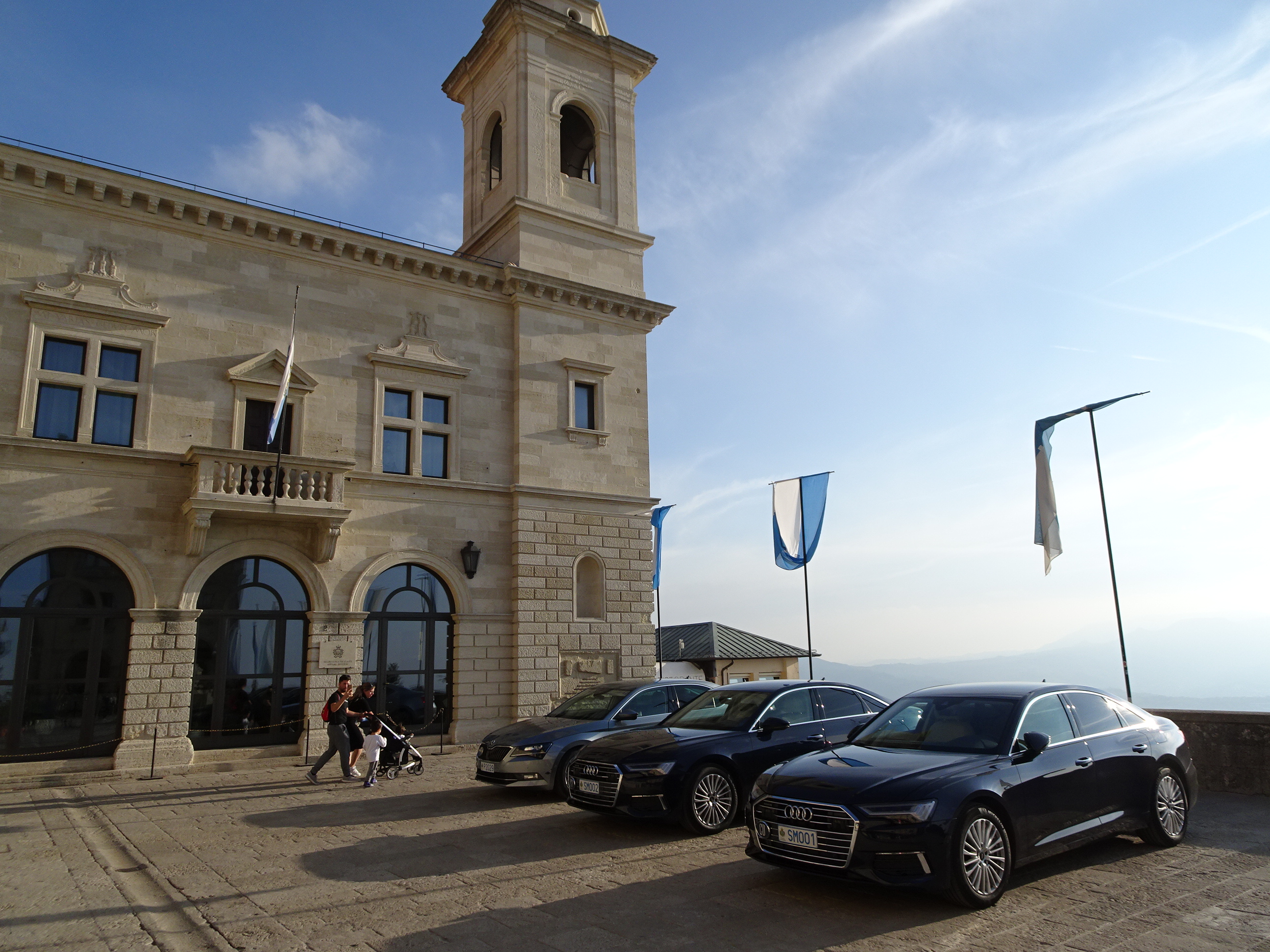 Acesta este palatul republicii. San Marino este condus de doi căpitani regenți aleși de un consiliu la fiecare 6 luni. Mașinile din imagine le aparțin, fiind folosind pentru deplasări oficiale.