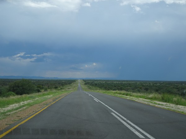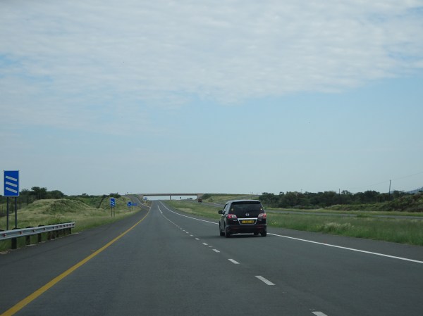 Șoseaua B1 de la nord de Windhoek e cea mai modernă din Namibia. O bună parte din ea este autostradă cu două benzi pe sens. Culmea, aici am mers mai încet decât pe drumurile neasfaltate, pentru că sunt limite de viteză pe alocuri de 80 sau chiar 60 km/h și există și ceva radare.