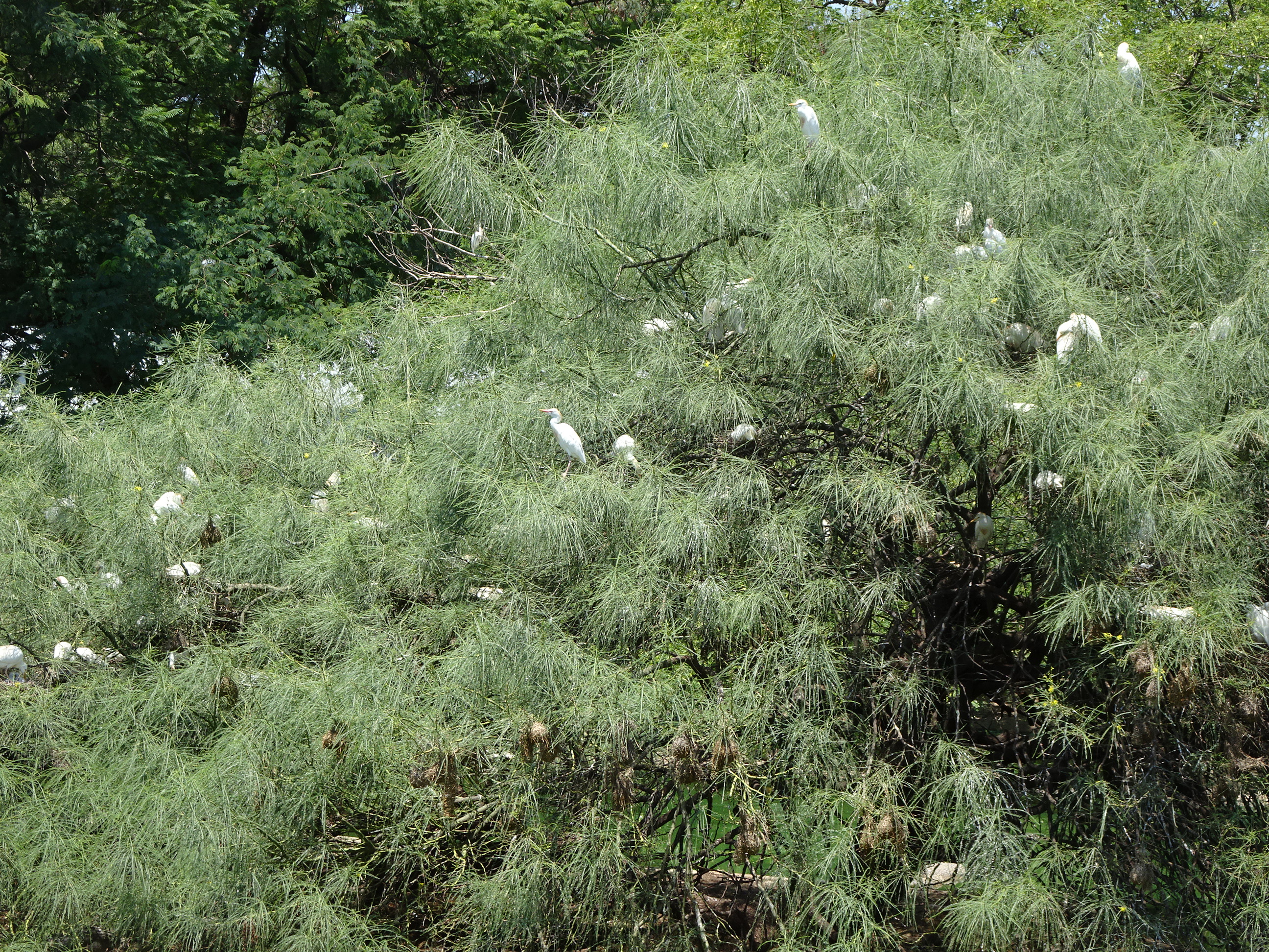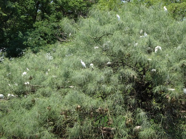 Un copac cu păsări. Se pare că egretele se înțeleg bine cu crocodilii, servindu-le și ca „dentist” când au nevoie