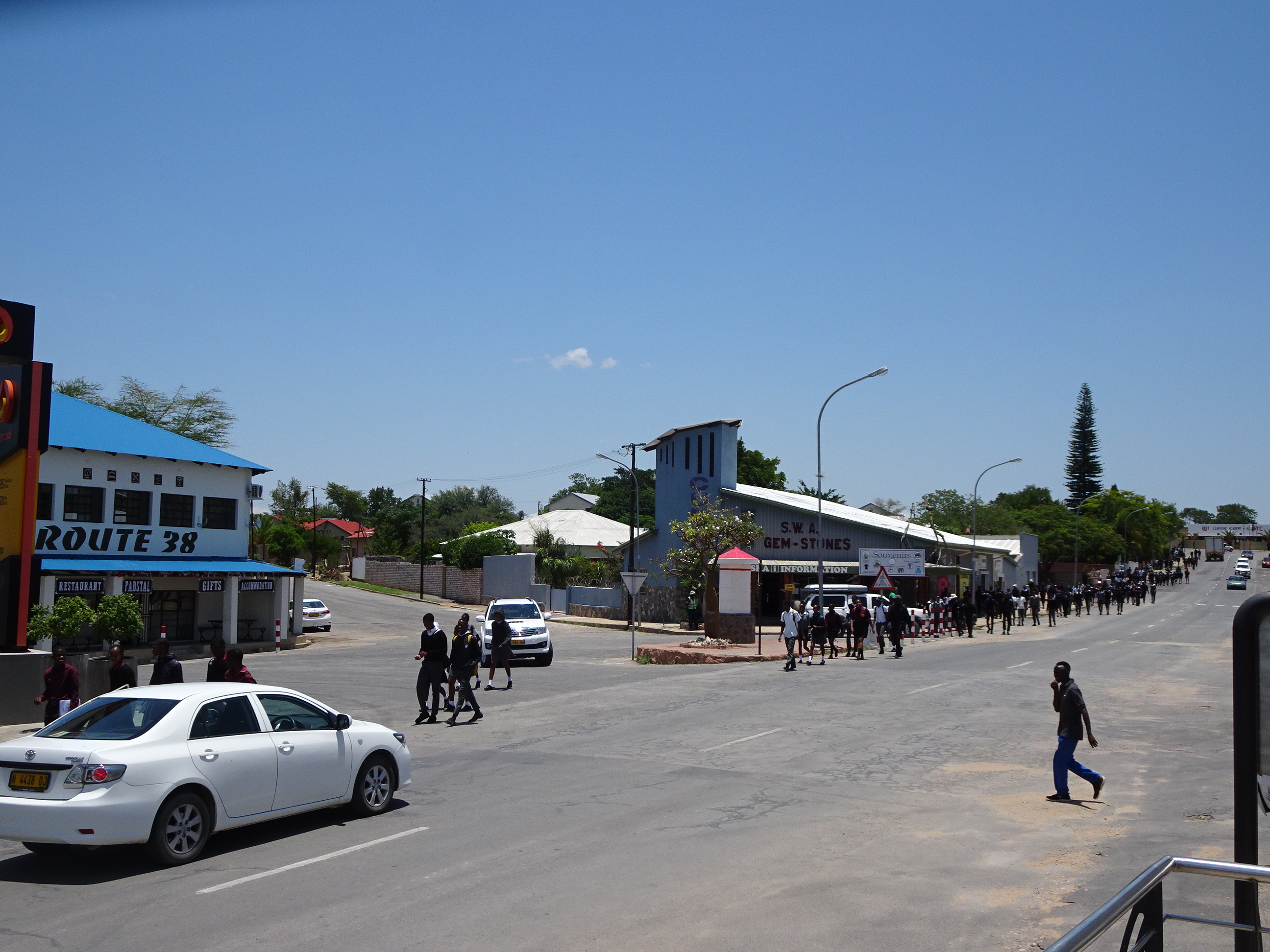La Windhoek am schimbat mașina. Mi-am luat la revedere de la camioneta Hilux care m-a plimbat prind deșertul Namib și am luat o mașină de oraș, un Golf. Motivul: de aici încolo până la Etosha aveam numai drumuri asfaltate și puteam face o economie bună pentru ultimele zile în Namibia ținând cont că mașina „compact” era de 2 ori mai ieftină.