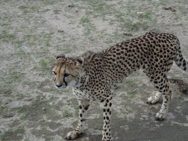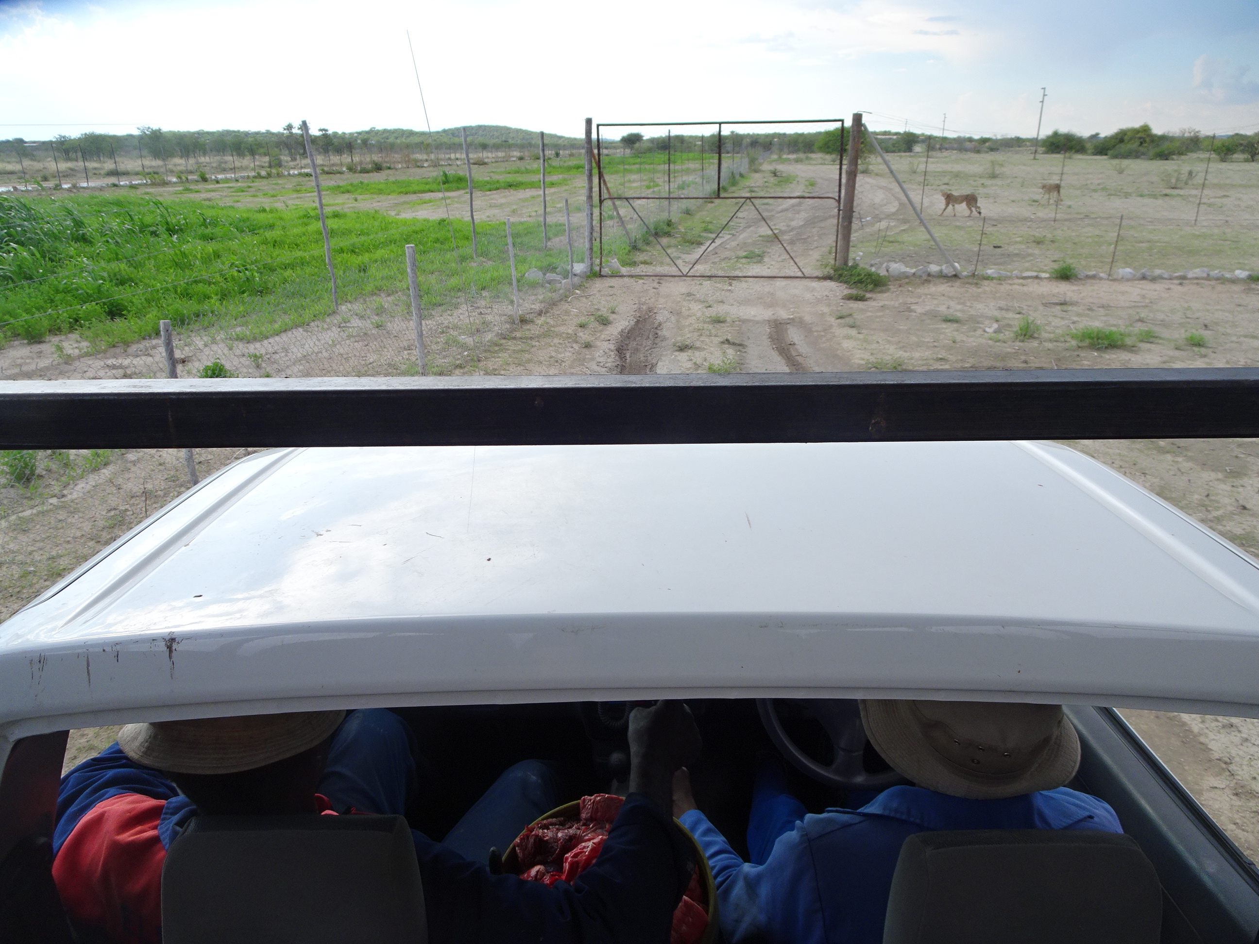Sunt sute de animale la El Dorado aflate în zone îngrădite, dar imense. Am început plimbarea printre gheparzi. Fiind seară era și ora cinei pentru ei iar ghidul o plecat la drum cu o găleată mare de carne.