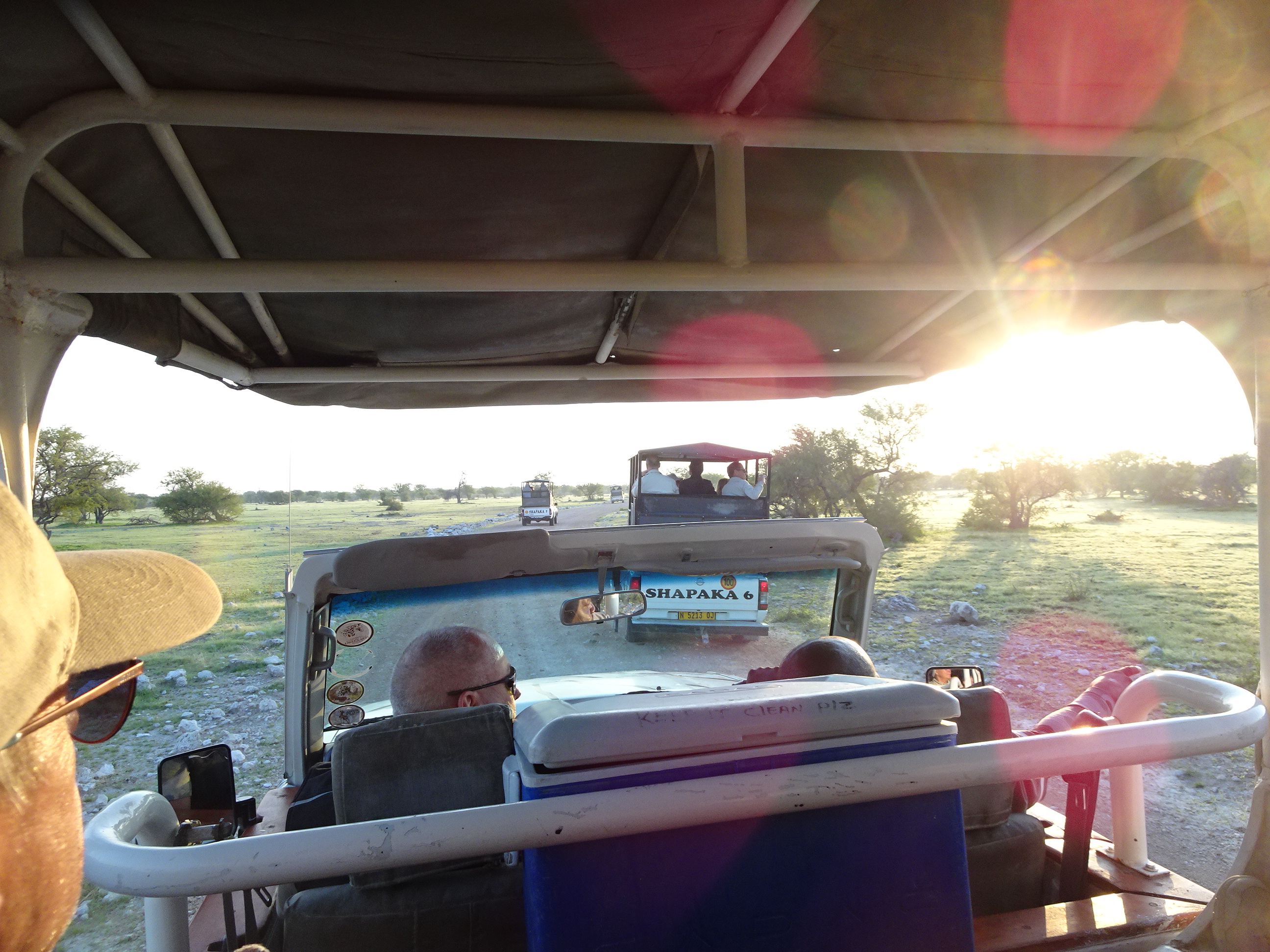 Am plecat așadar în zori cu mașina la Etosha Lodge aflat la vreo 5 kilometri. Am parcat la recepție și la scurt timp am pornit în safari cu jeepurile.