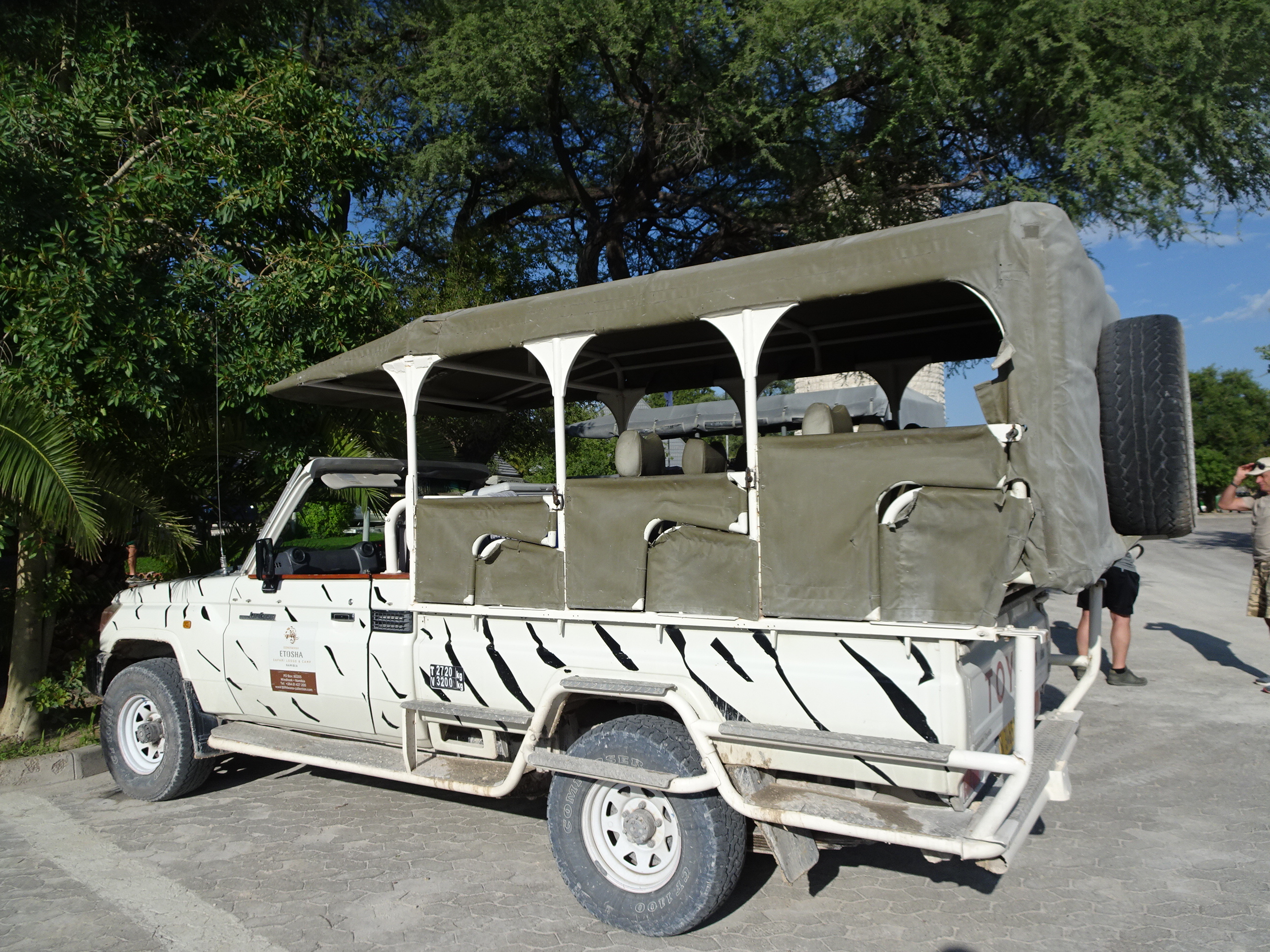 Ziua următoare am dorit un tur safari prin Etosha, prin adevărata sălbăticie. La El Dorado, singura variantă era un tur privat care costa enorm. Singura opțiune convenabilă a fost să vorbesc la Etosha Lodge (cel mai mare resort din zonă) și să rezerv un tur de grup cu ei. Acest tur a costat numai 60 de dolari, incluzând 6 ore de safari și prânzul în rezervație.