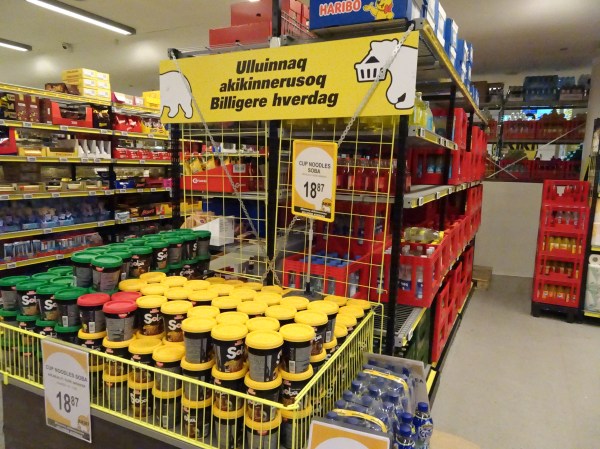 Am trecut întâi pe la supermarket pentru provizii. Am găsit tot ce aveam nevoie acolo, dar la prețuri foarte mari. Asta este ceva standard în Groenlanda unde nimic nu se produce local și totul este transportat în condiții dificile din Danemarca sau alte părți ale Europei.